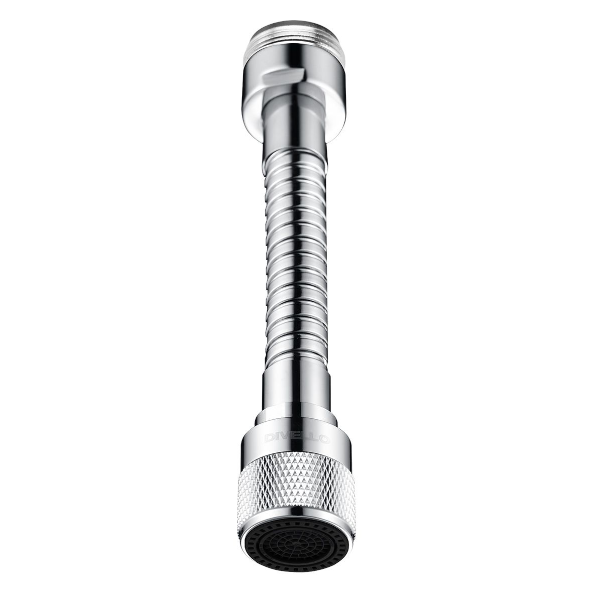 Strålsamlare med slang för köksblandare (i.g. M22 x 1 mm eller u.g. M24 x 1 mm). DIVELLO ECONOM™: Armaturoberoende och energieffektiv originalprodukt, reducerar vatten- och energiförbrukningen på existerande tappställen med upp till 60 %. DIVELLO DYNAMIC S-TECH™: Förbättrad vattenkomfort - konstant vattenflöde oavsett högt eller lågt vattentryck. Säkerställer att efterfrågat vattenflöde levereras i hela fastighetsbeståndet trots att vattentrycket varierar i samhällen, fastigheter och beroende på belastning av vattennätet. Upplev en kraftig strålbild med optimal sköljkomfort. Kalkavvisande innerdelar. Shower Spray: Växla mellan traditionell stråle och duschstråle genom skonsamt vridreglage.