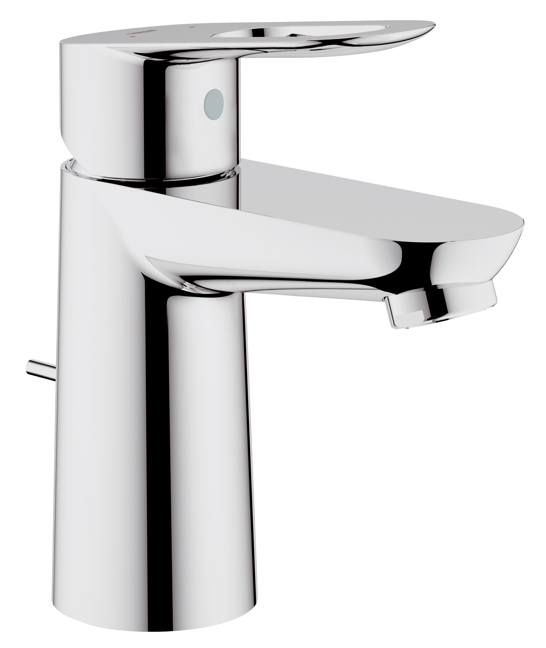 Start Loop Tvättställsblandare ettgrepp, DN 15 S-Size Etthålsmontage, Metallgrepp, GROHE Longlife 28 mm keramikinsats, GROHE StarLight kromyta, GROHE EcoJoy strålsamlare 5,7 l/min, GROHE QuickFix system för snabb montering, Bottenventil 1 1/4", Flexibla anslutningsslangar