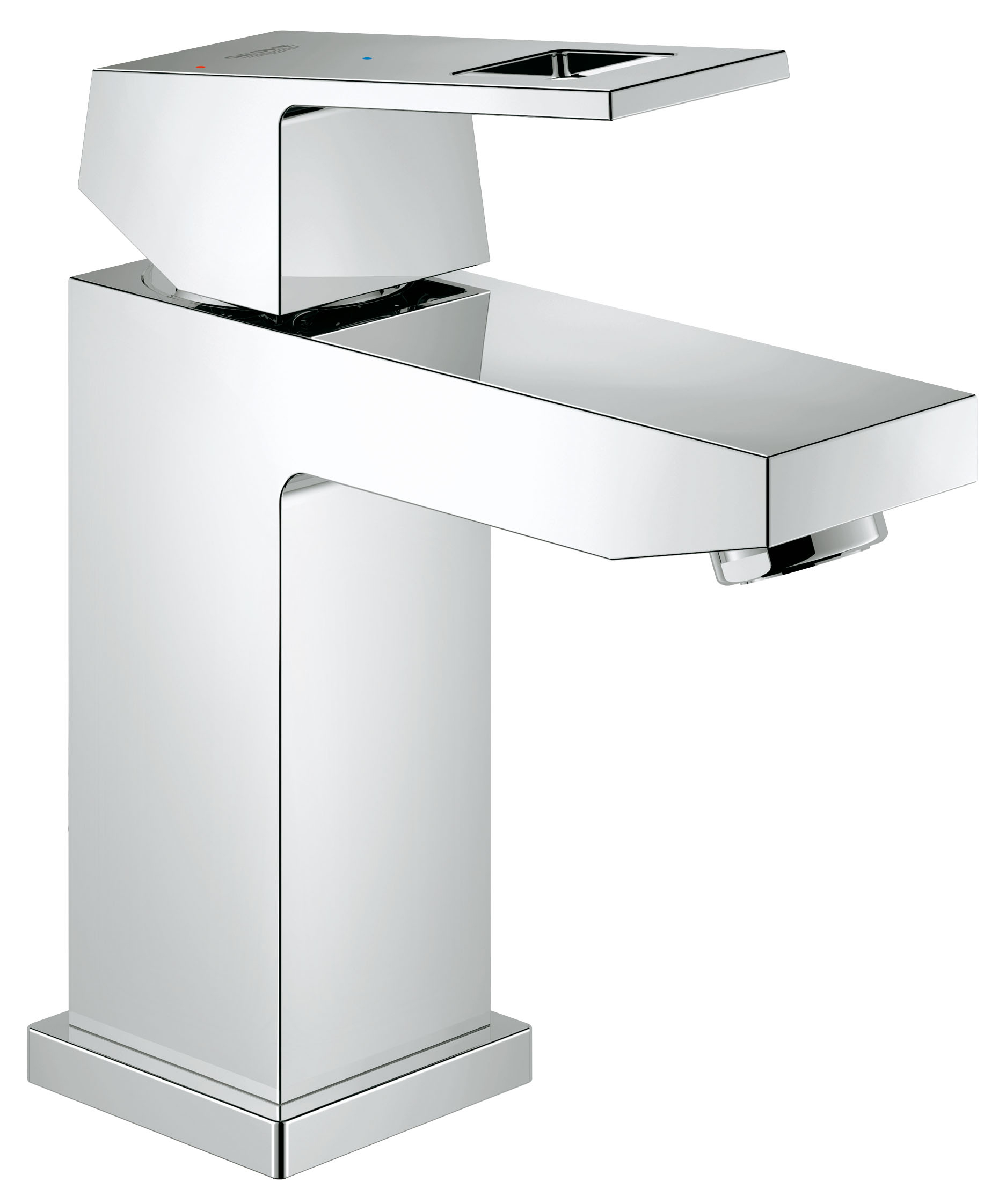Eurocube Tvättställsblandare ettgrepp, DN 15 S-Size Etthålsmontage, Metallgrepp, GROHE SilkMove ES 28 mm keramisk insats med energibeparande funktion via kallstart, Med temperaturbegränsare, GROHE StarLight kromyta, GROHE EcoJoy strålsamlare 5,7 l/min, GROHE QuickFix Plus snabbt installationssystem, Slät kropp, Flexibla anslutningsslangar