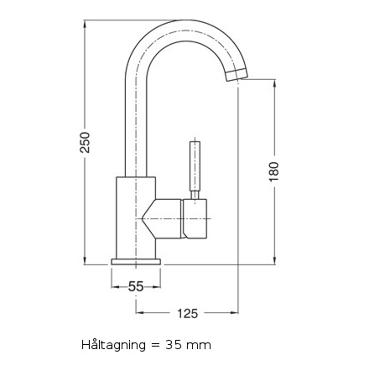 Ettgrepps tvättställsblandare. Passar 35 mm hål.