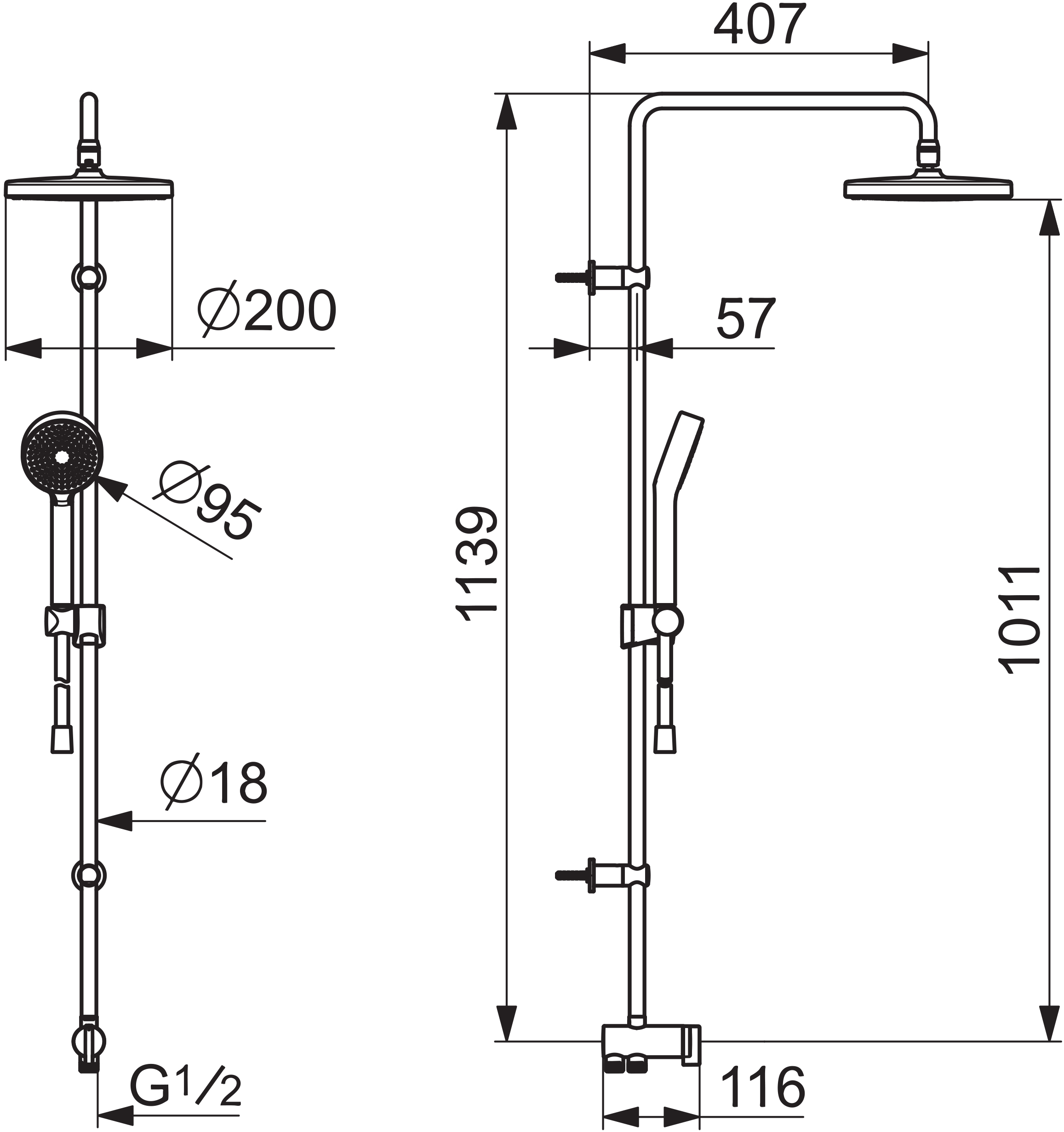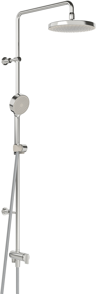 Oras Apollo rain shower takduschset bestående av, keramisk omkastarfunktion, vinkelbar takdusch med antikalksil Ø 200mm, kapbar duschstång med justerbara fästen, 9l/min antikalkhanddusch Ø 95mm, duschslang 1750mm.