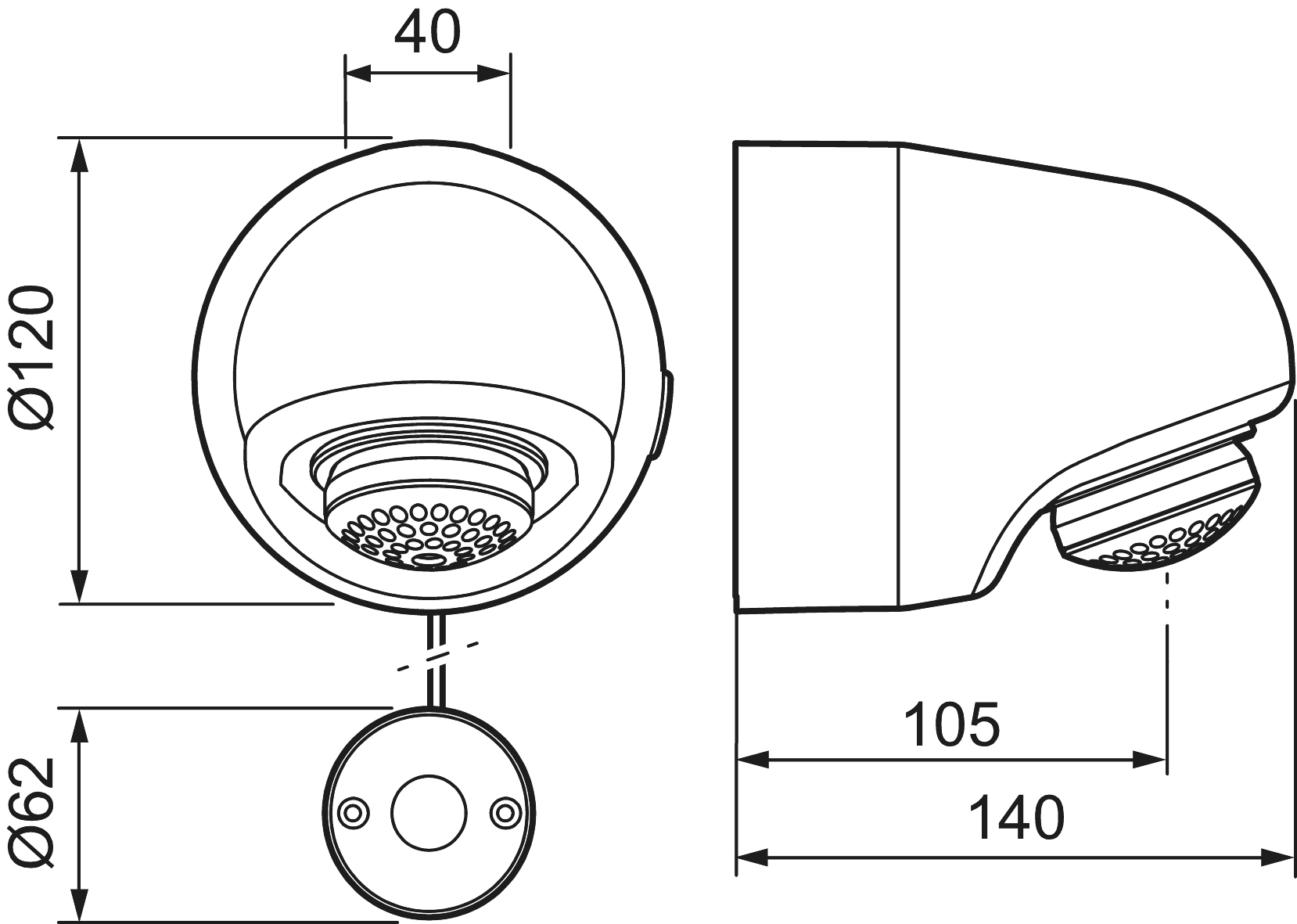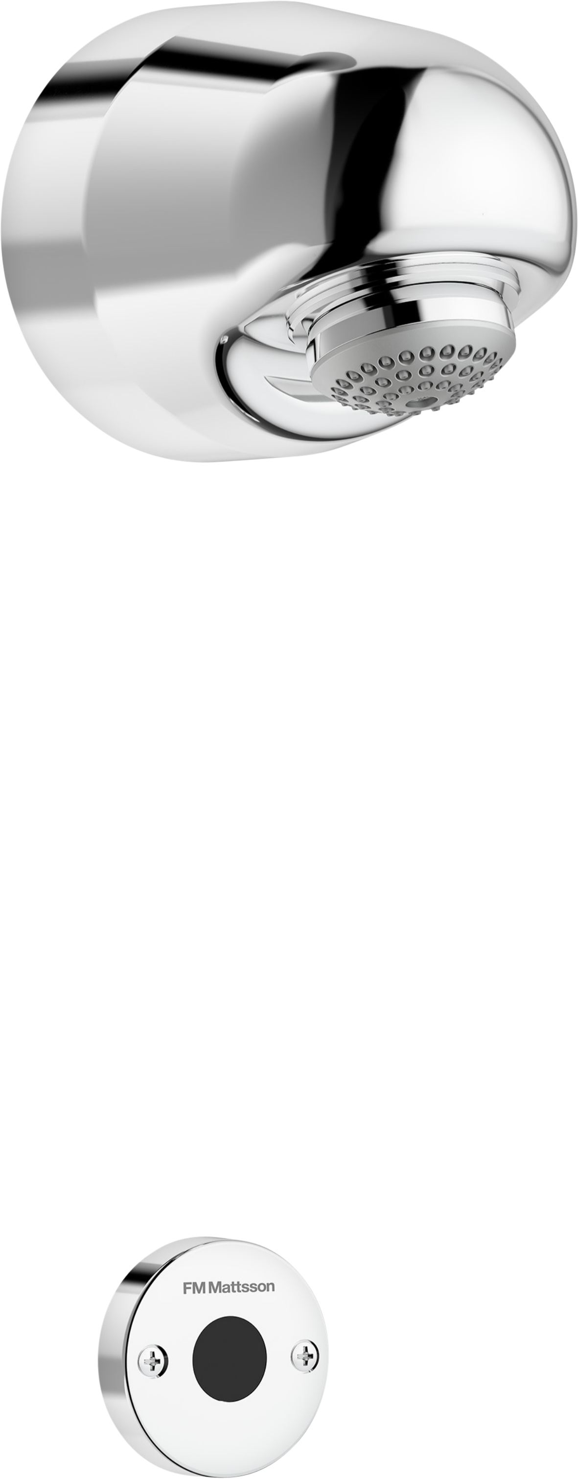 Nätdrift. Magnetventil, termostat och elektronik integrerat i duschhuvudet. Med programmerbar touch-knapp. Anslutning bak. Hetvattenspolning.