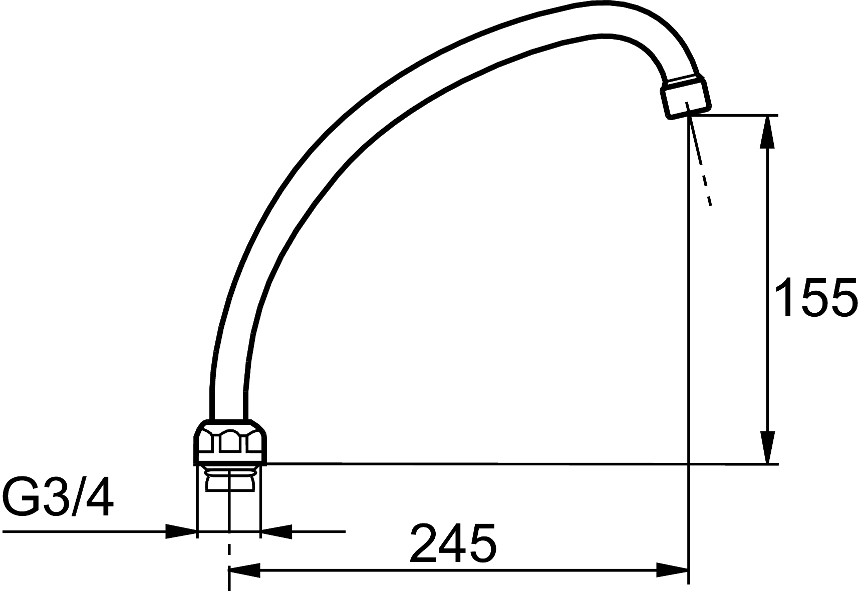 Spärrad svängpip för Mora Temp High Standard, 120°. Krom.