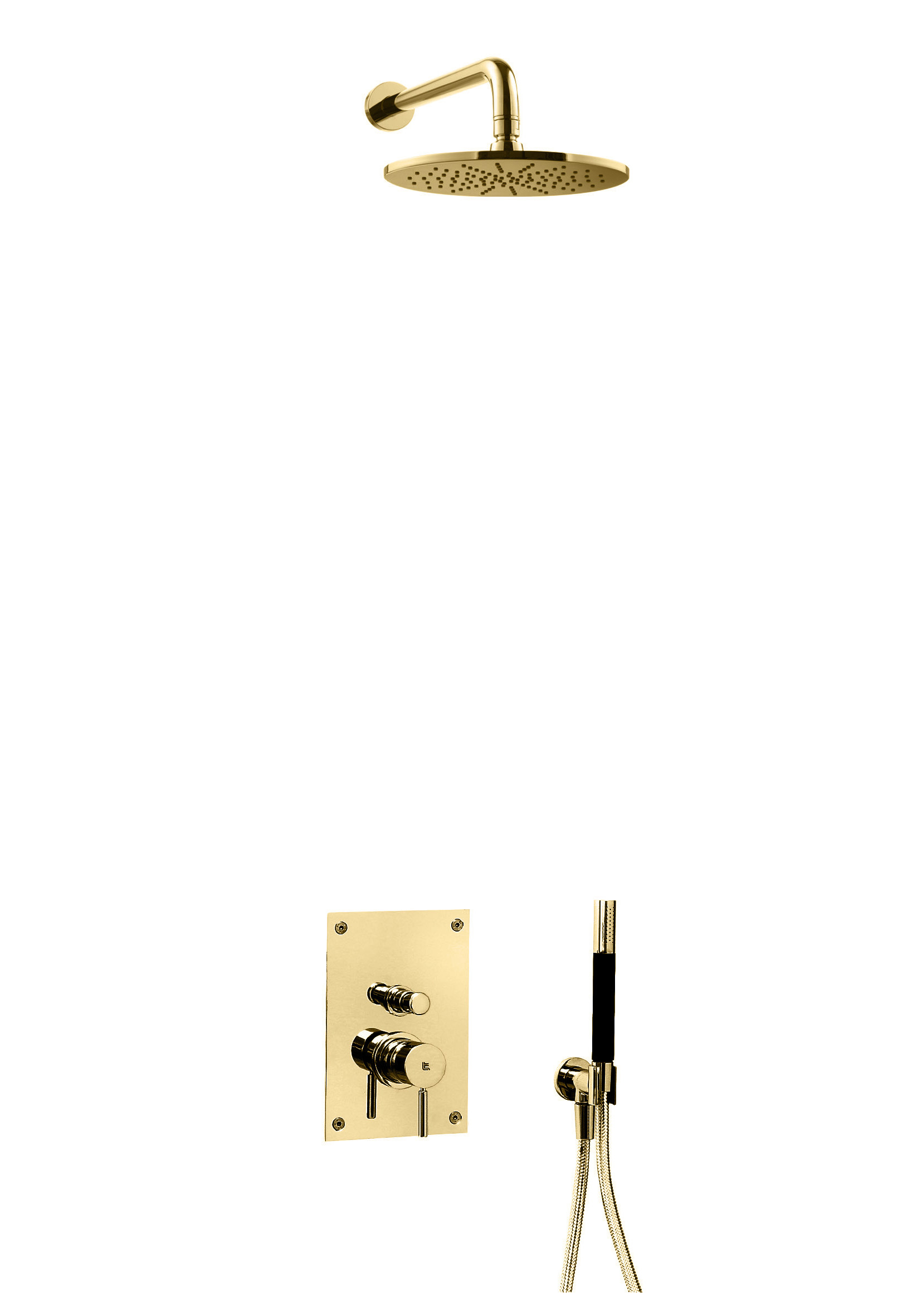 Takduschpaket för inbyggnad med ettgreppsblandare, handdusch och taksil. Anslutningsrör i vägg ingår ej.