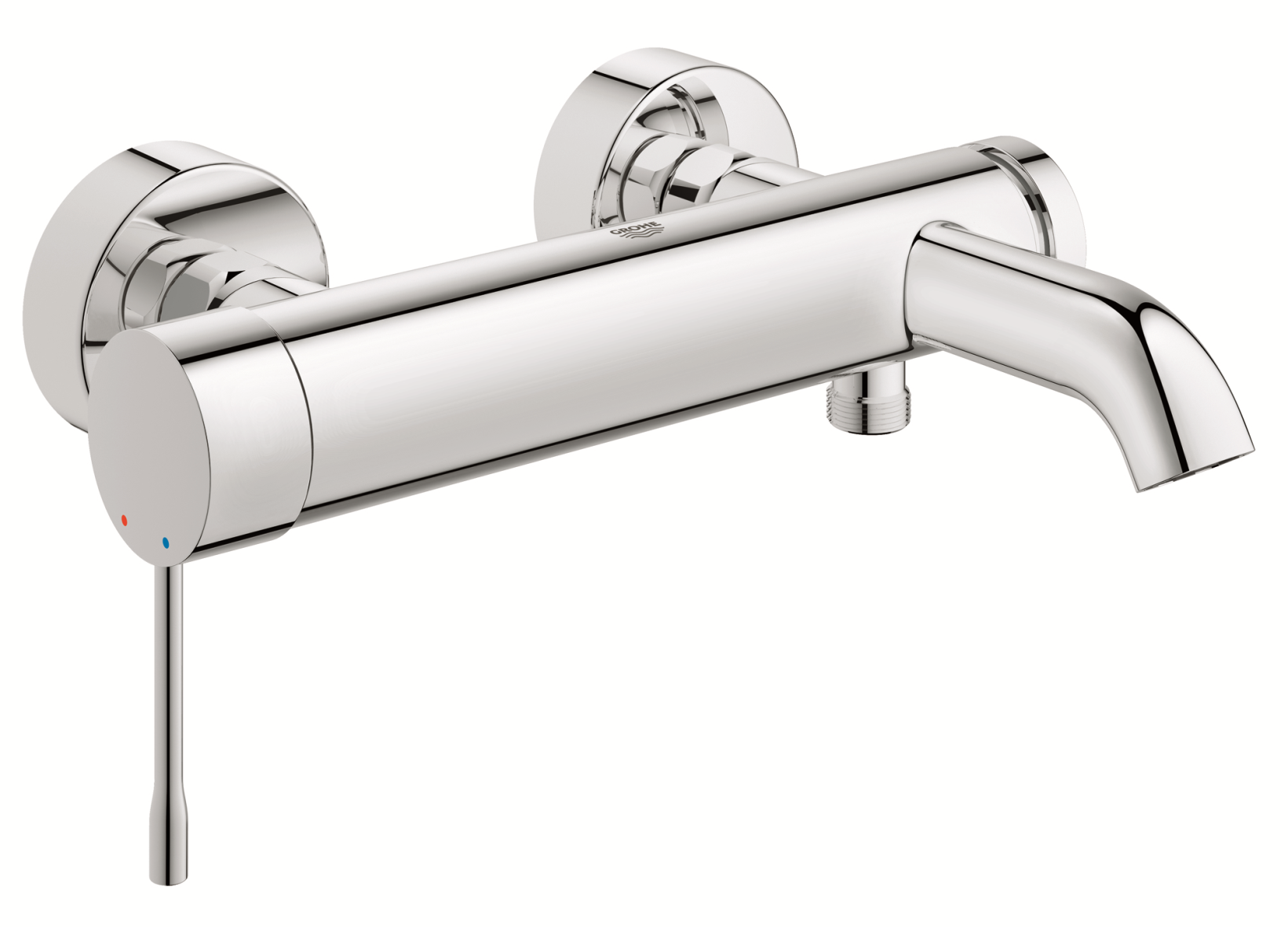 Essence Ettgreppsblandare för badkar & dusch, DN 15 Väggmontage, Metallgrepp, GROHE SilkMove 35 mm keramikinsats, Med temperaturbegränsare, GROHE StarLight kromyta, Automatisk omkastning: badkar/dusch, Perlator för verktygsfritt utbyte, Duschanslutning 1/2", Med backventil, S-anslutningar, Backventil mot tillbakaflöde, Lägsta tryck: 1,0 bar