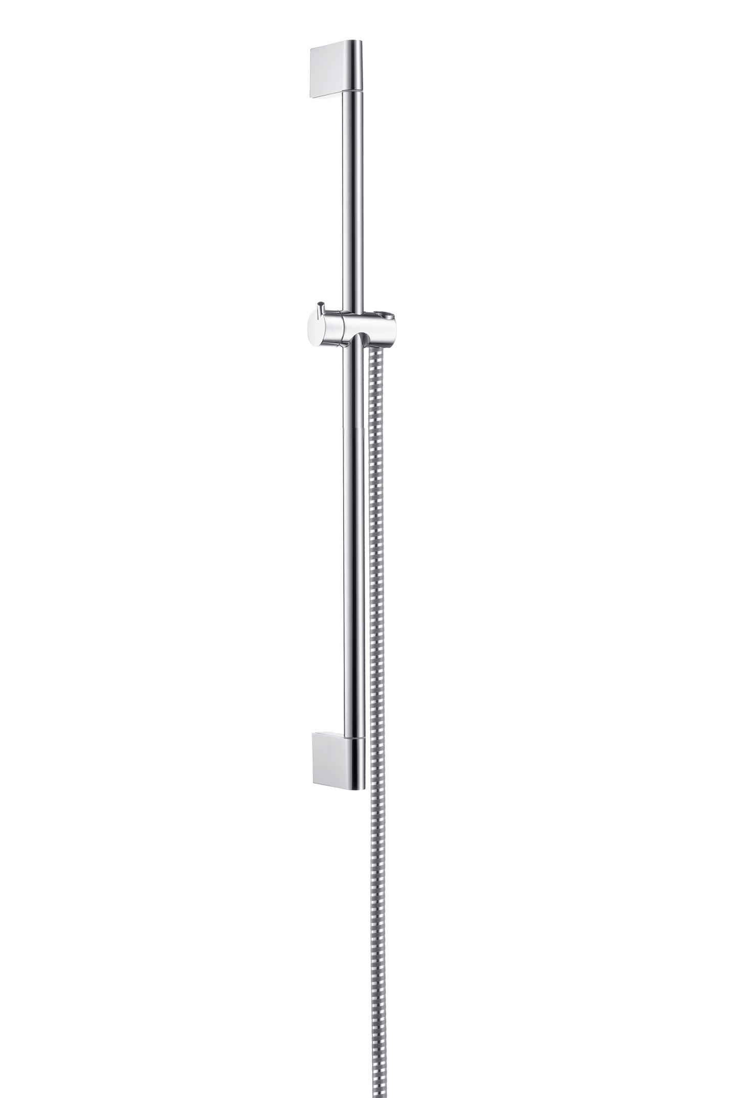 • består av: duschstång, duschslang, glidfäste • rörlängd: 669 mm • duschstång diamter: 22 mm • stångens form: rund • borravstånd: 625 mm • translucent duschskena i plast • handduschhållare med låsmekanism • lutningsvinkel handduschhållare justerbar i 2 steg • väggfästen av plast