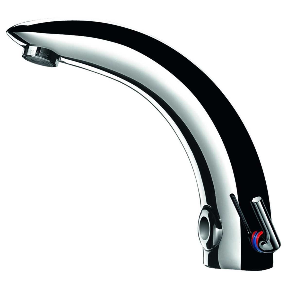 Beröringsfri elektronisk tvättställsarmatur med blandningsmöjlighet. Anslutning kallt och varmt vatten.