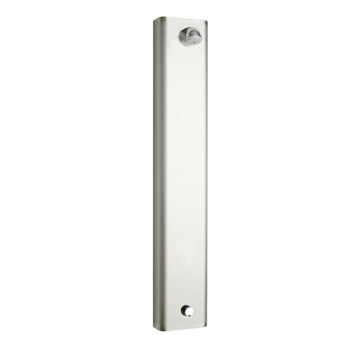 duschventil som bara kräver ett lätt tryck med handen för att starta flödet samt en Termostatblandare som sitter dolt inne i panelen med möjlighet att justera temperaturen utifrån.