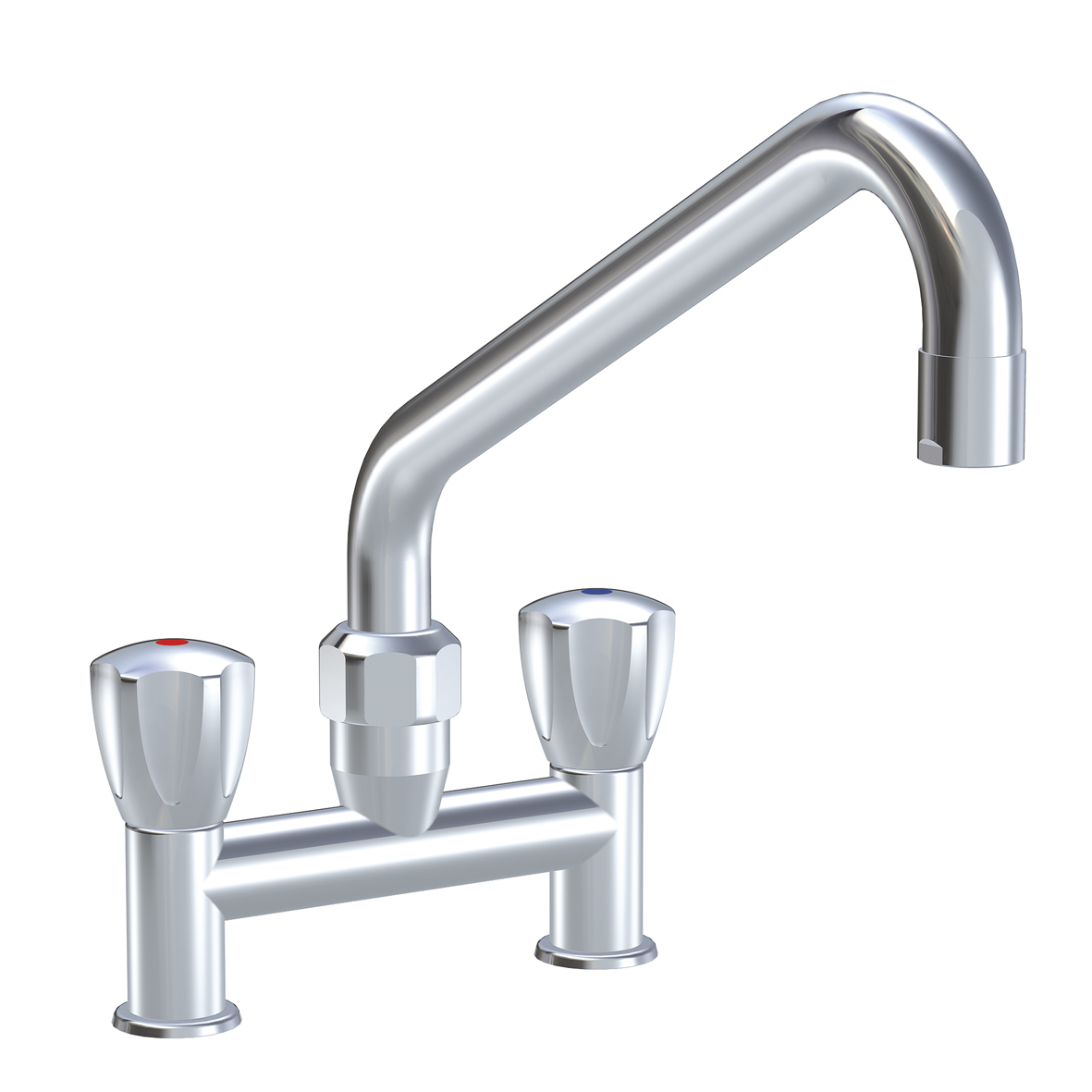 KWC Storköksblandare 2-grepps, 2-håls-bänkmontage. A=300mm T=440mm