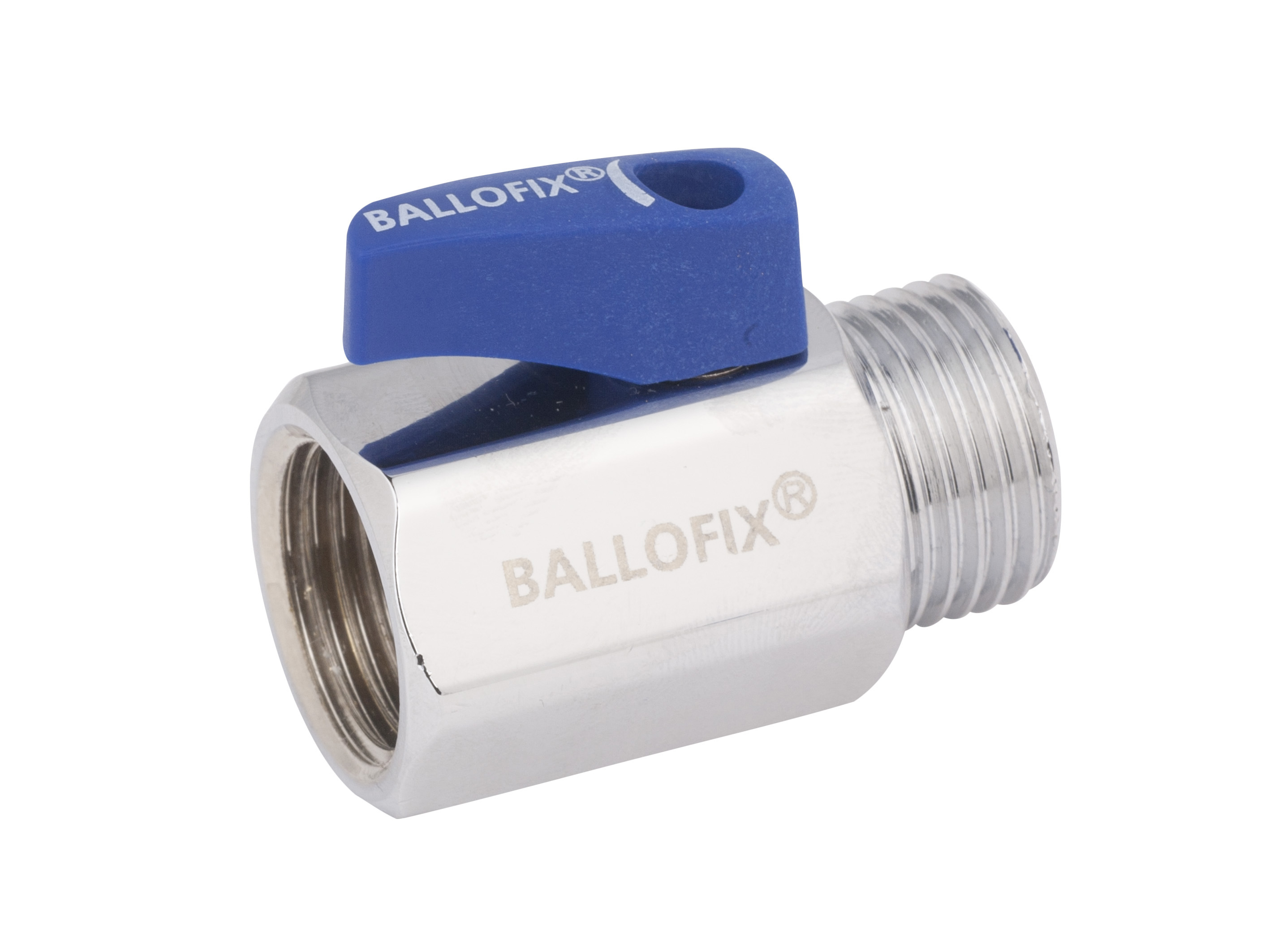 Ballofix® rak med blått vred R15 inv x utv gänga