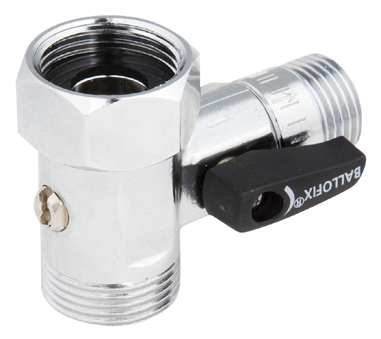 Ballofix® T-ventil med vred och backventil G15 x R20 x R15 löpmutter x 2 utv gänga