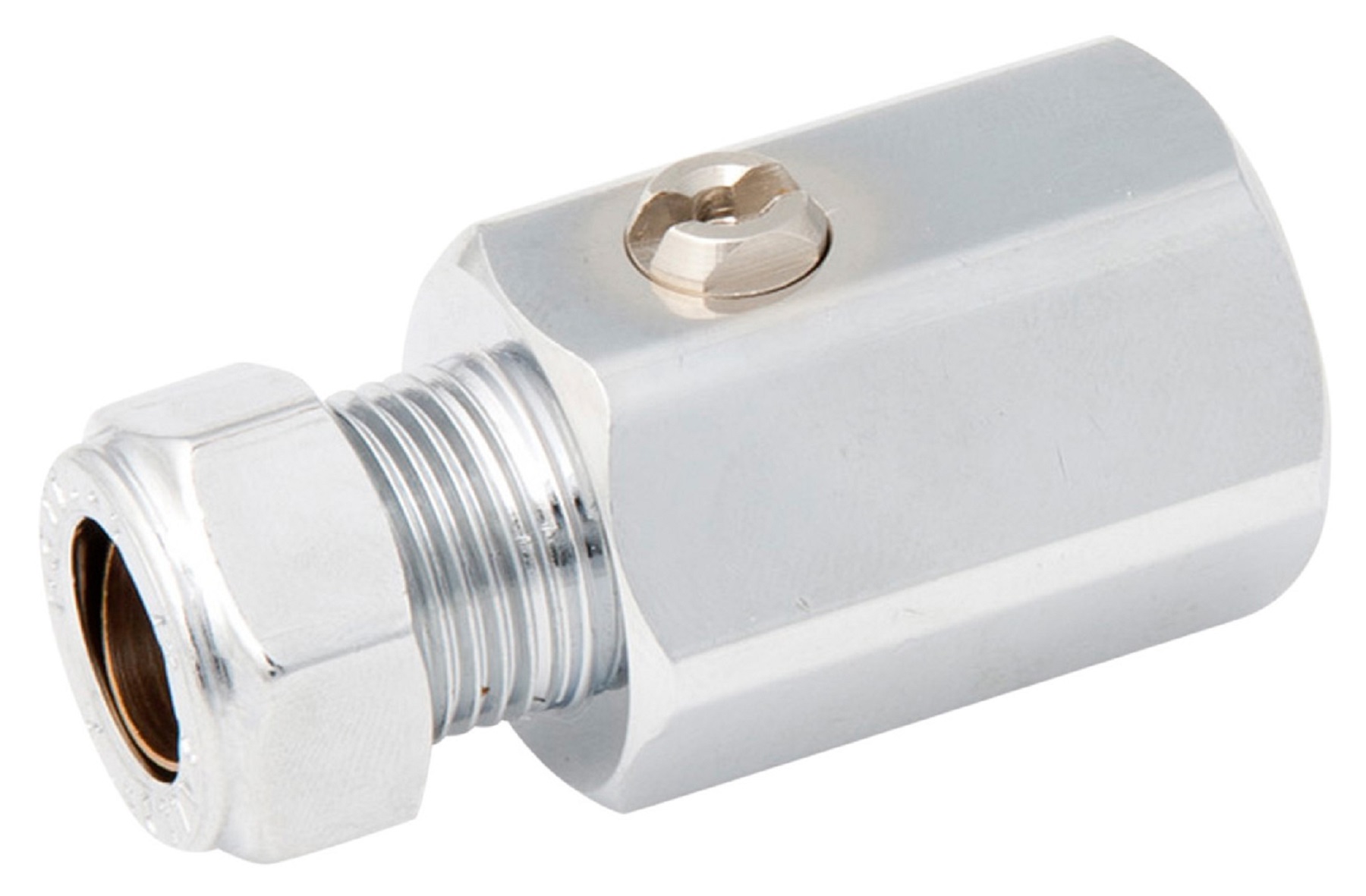 Ballofix 504 Rak kulventil 10xR15, med klämring x invändig gänga förkromad utan vred
