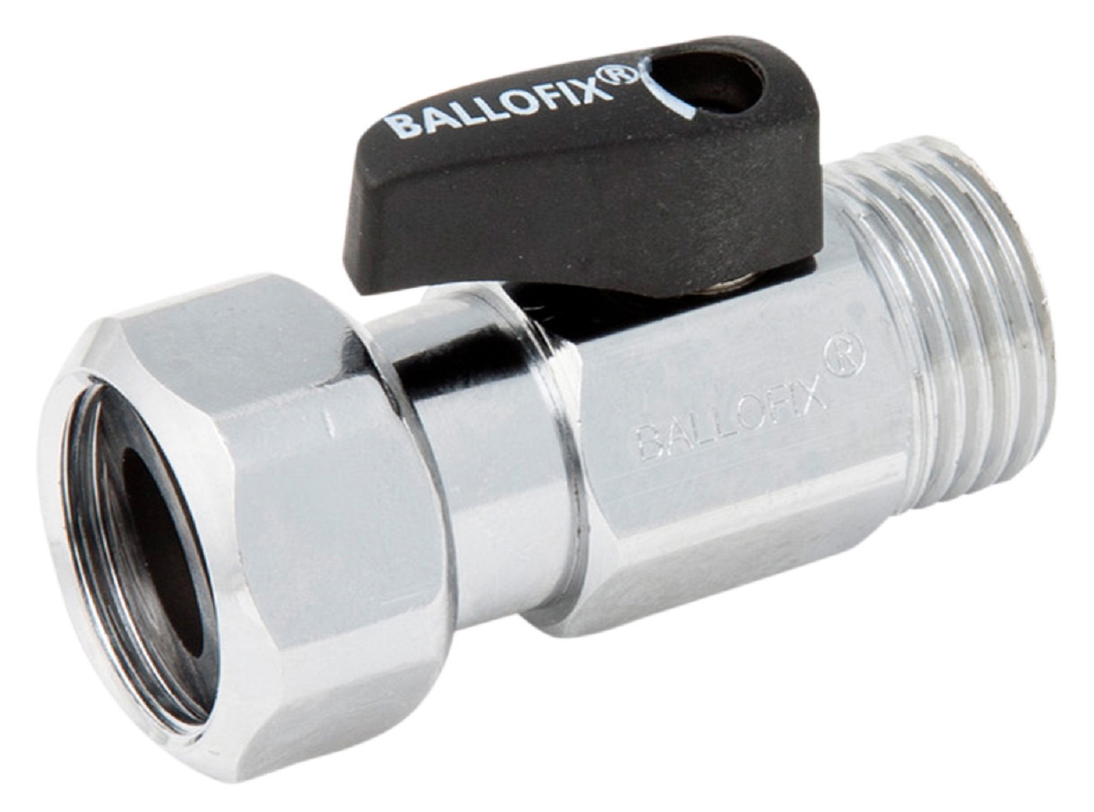 Ballofix 513 Rak kulventil R15xR15, med utvändig gänga x lekande mutter förkromad med vred