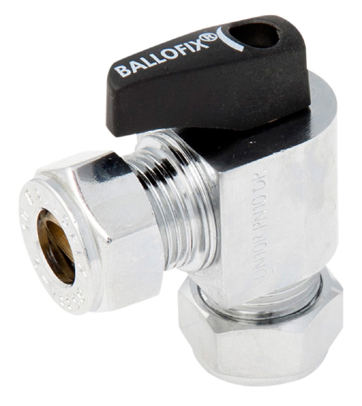 Ballofix 520 Vinkel kulventil 12x10, med klämring x klämring förkromad med vred