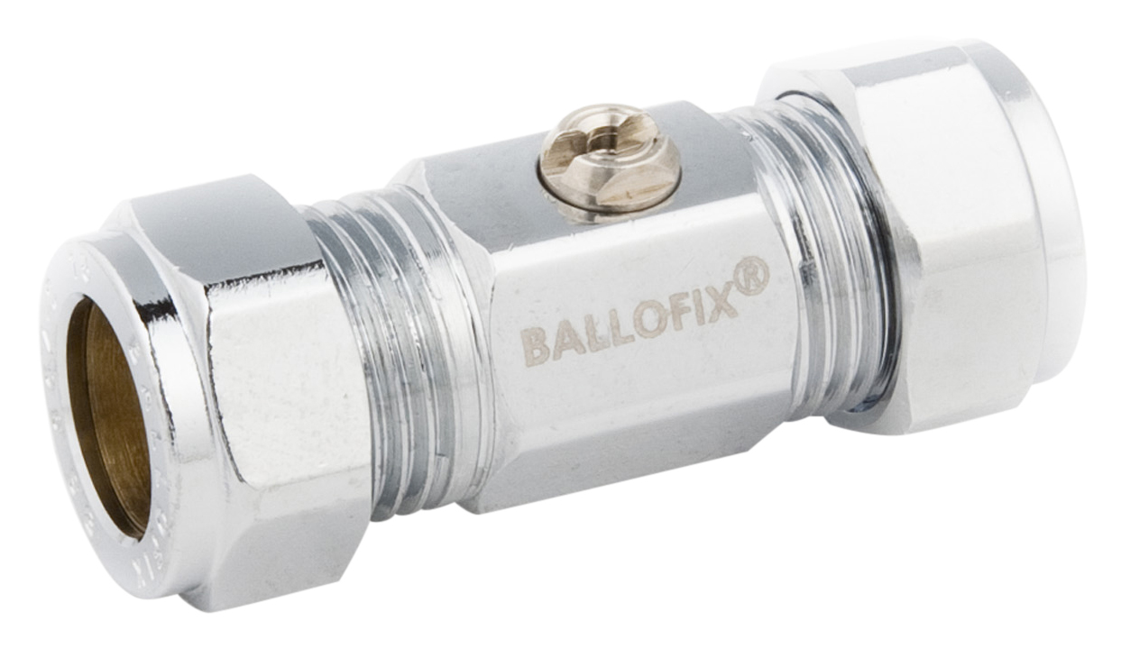 Ballofix 506 Rak kulventil 16x10, med klämring x klämring förkromad utan vred