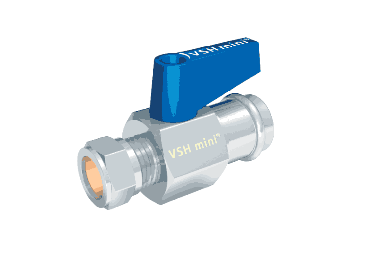 VSH Mini 1444 Rak Kulventil 15x12, med presskoppling x klämring förkromad med vred