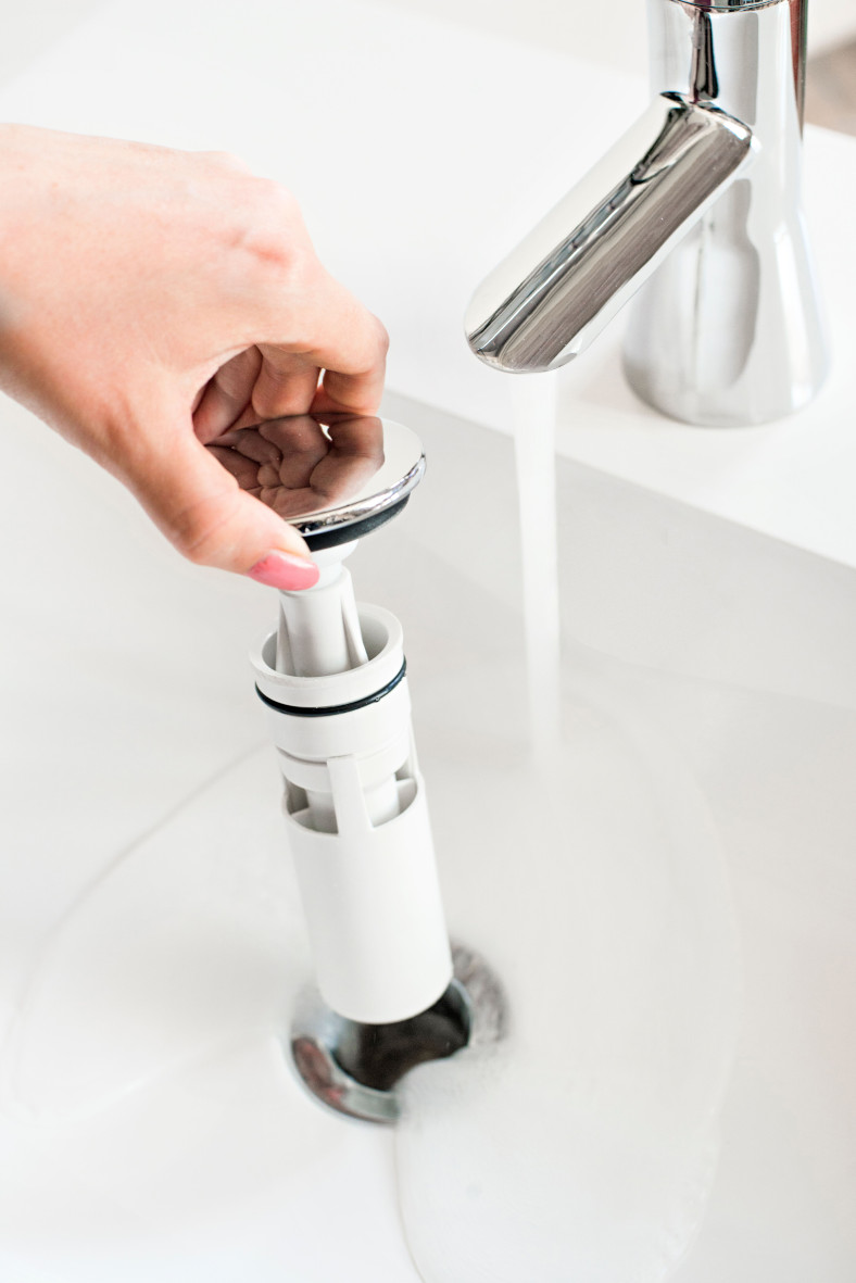 Vattenlås Easy-Clean med pop-up bottenventil. Passar till alla tvättställ med överfyllnadshål i möbelserierna VISKAN och GRAND.