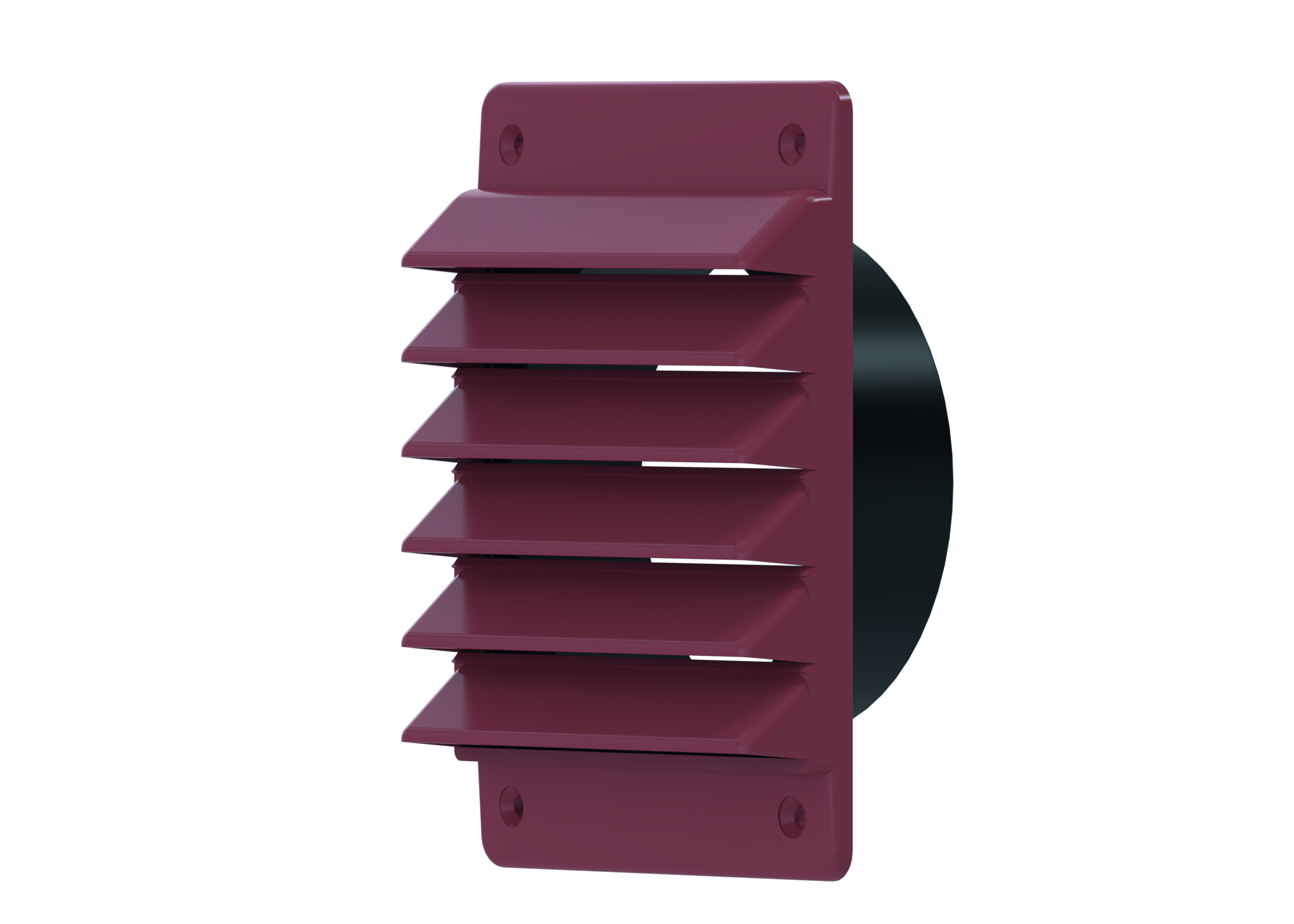 Variant av fyrkantsgaller i rött, smalare utformning för att passa in på ribbad fasad, mått 110x150 mm, med svart anslutningsstos Ø98x30. Anpassat för ventiler och avsett att användas på utvändig vägg. Försett med försänkta skruvhål för skruvmontage. Försett med väggenomföringsstos och insektsraster 150. Med transparent packning för passning med art nr 661080 Fresh modulrör Ø100/104x130. Utan packning passar gallret art nr 188010 Fresh modulrör Ø98/102x100. Gallret tillverkas i PP (polypropen) med låg miljöpåverkan. Finns i flera olika färger.
