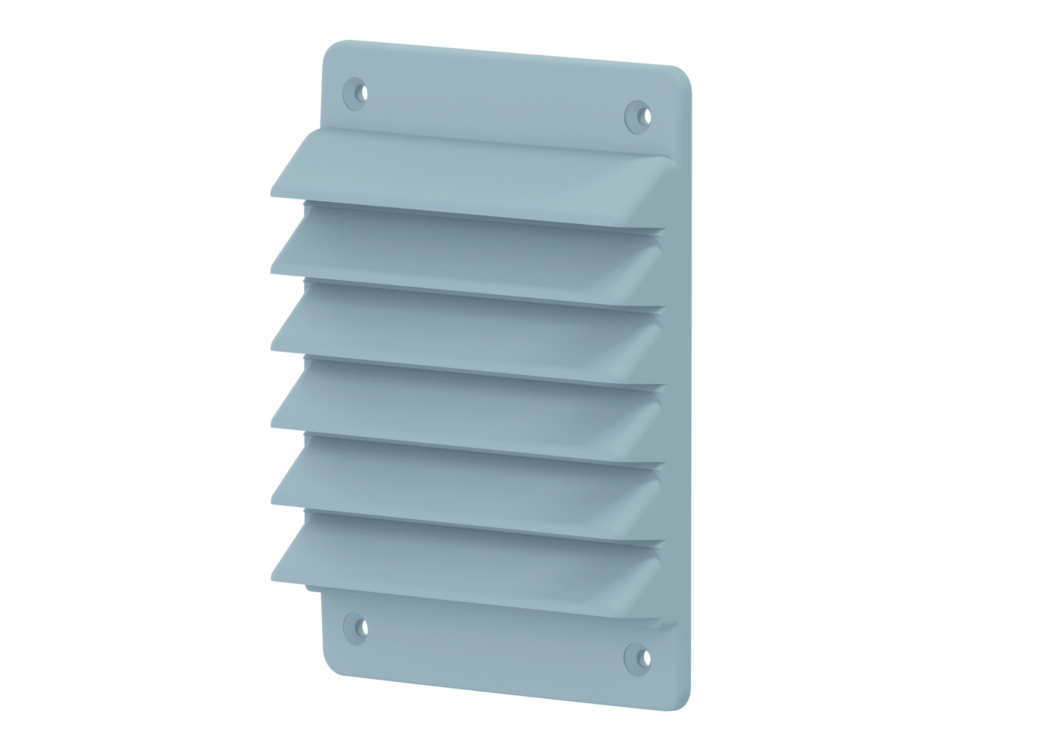 Rektangulärt ytterväggsgaller 110x150mm avsett att användas på utvändig vägg, försett med försänkta skruvhål för skruvmontage.