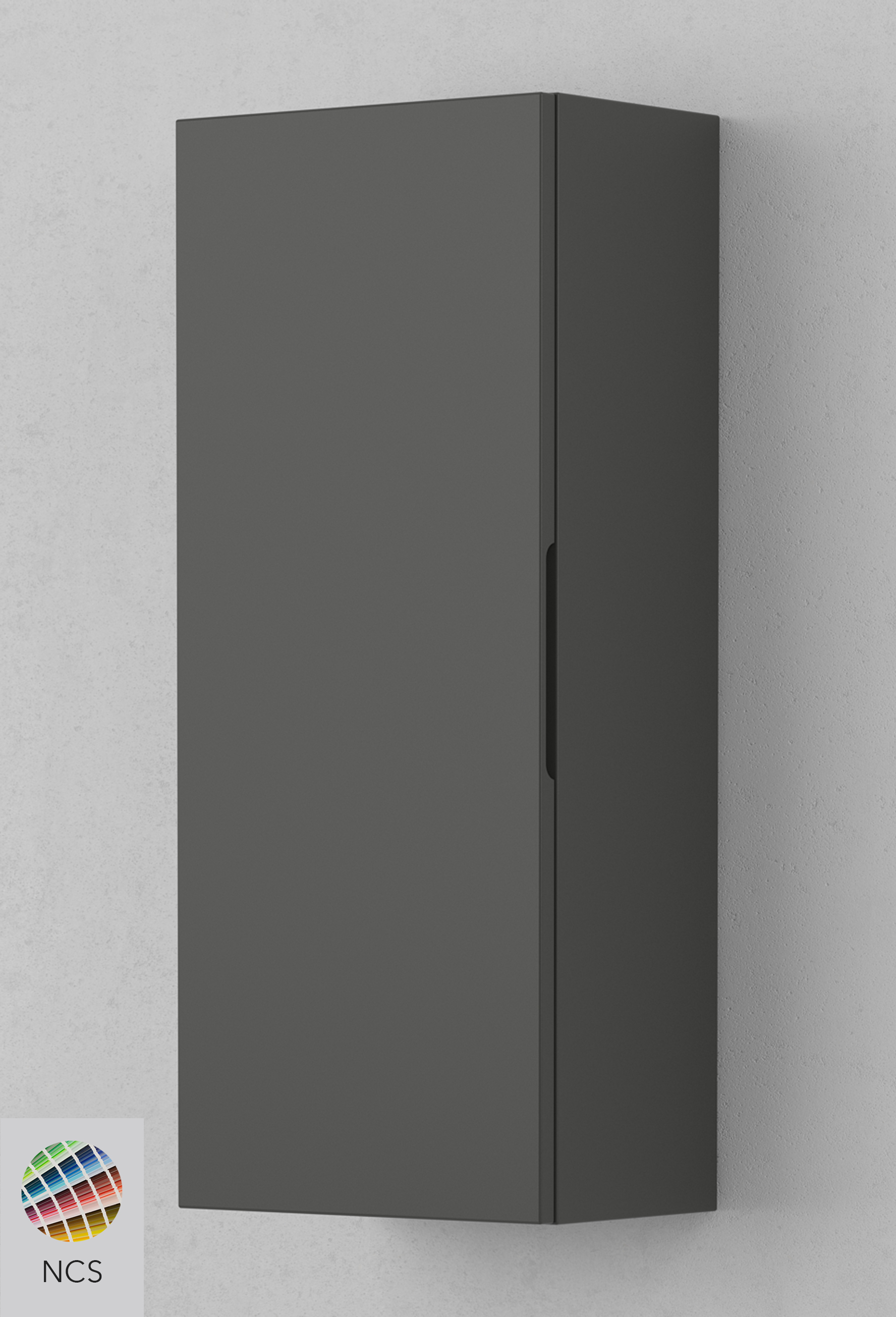 VISKAN Solid väggskåp i 72 cm höjd med infräst grepp och två flyttbara hyllplan i 6 mm härdat säkerhetsglas. Den silkeslena TX Top Extreme™-ytbehandling ger en möbel utan skarvar och som håller mot både fukt, stötar och repor. Gångjärnen kommer från Grass.