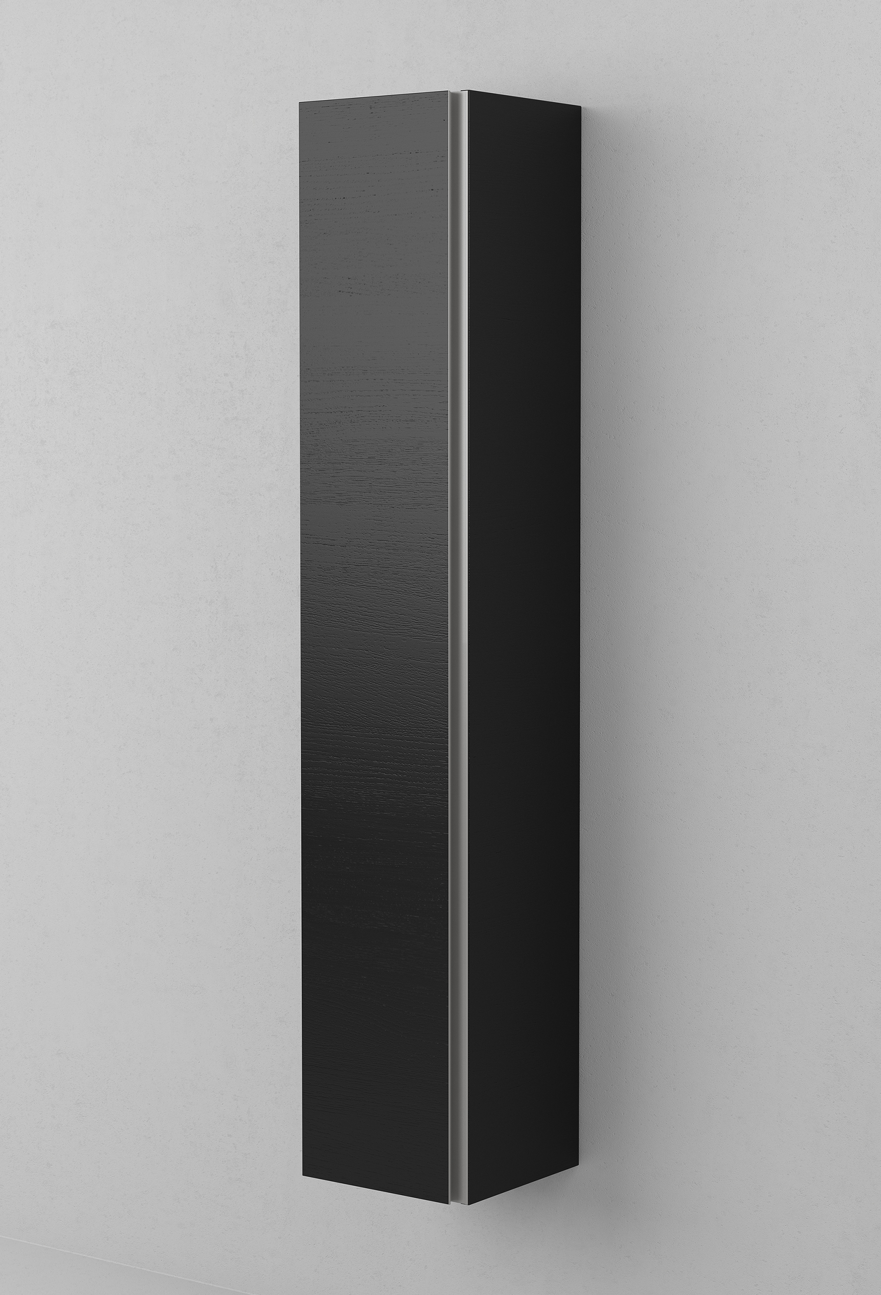 Vårt smalaste väggskåp VISKAN Grip i bredden 30 cm har en grepplist i aluminium och fyra flyttbara hyllplan i 6 mm härdat säkerhetsglas samt ett fast hyllplan i trä. Den silkeslena ytbehandlingen TX Top Extreme™ ger en möbel utan skarvar och som håller mot både fukt, stötar och repor. Gångjärnen kommer från Grass.