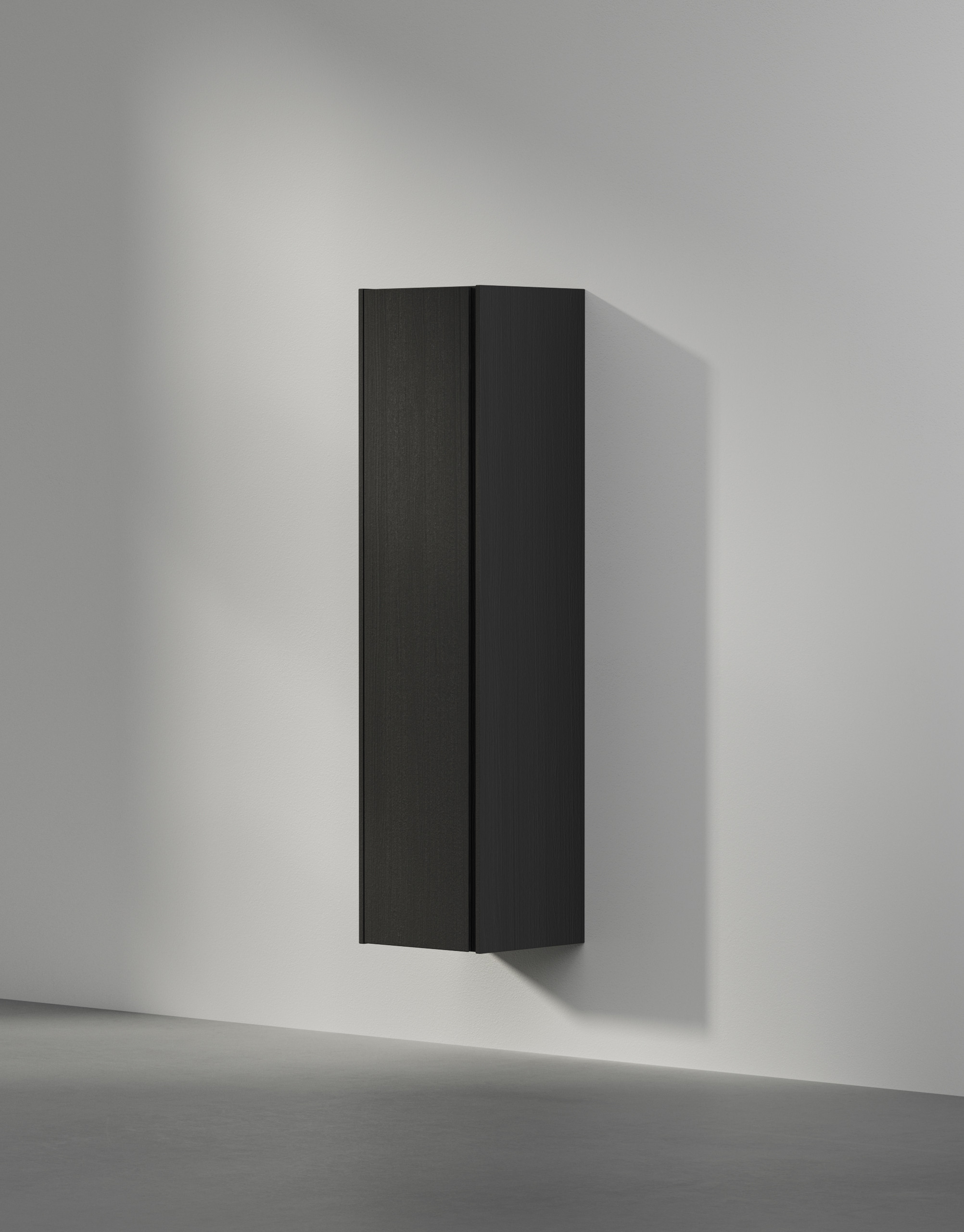 Ett rymligt högskåp som matchar kommoderna i möbelserie Grand Grip med infräst grepp i dörren. Välj om du vill ha dörren monterad till höger eller vänster. Skåpet har ett fast hyllplan i trä, övriga i 6 mm härdat säkerhetsglas, samtliga flyttbara. Extrautrusta gärna högskåpet med eluttag, valfri placering. Flera högskåp kan placeras intill varandra.