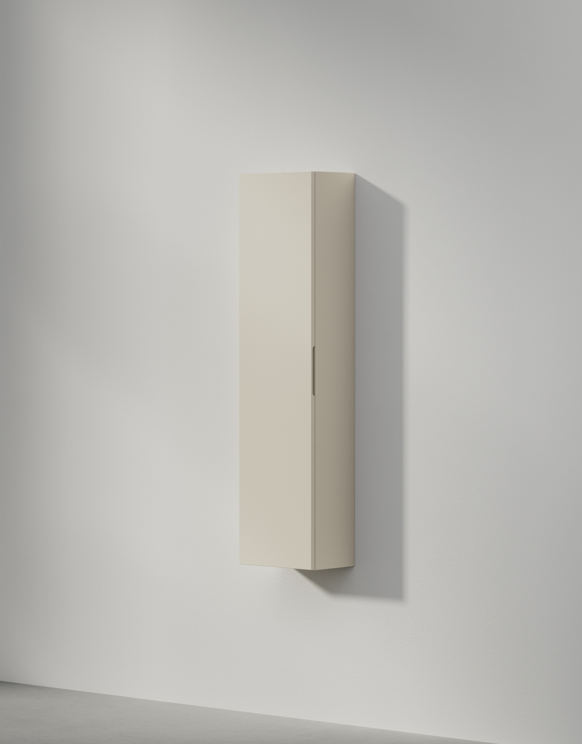 Väggskåp som matchar kommoderna i möbelserie Viskan Solid. Skåpet kommer med infräst grepp i dörren som du vid beställning väljer om du vill ha monterad till höger eller vänster. Komplettera med grepp eller handtag om du vill. Skåpet har fyra hyllplan i 6 mm härdat säkerhetsglas, samtliga flyttbara. Två väggskåp kan placeras intill varandra om du beställer ett med öppning åt vänster, det andra åt höger.