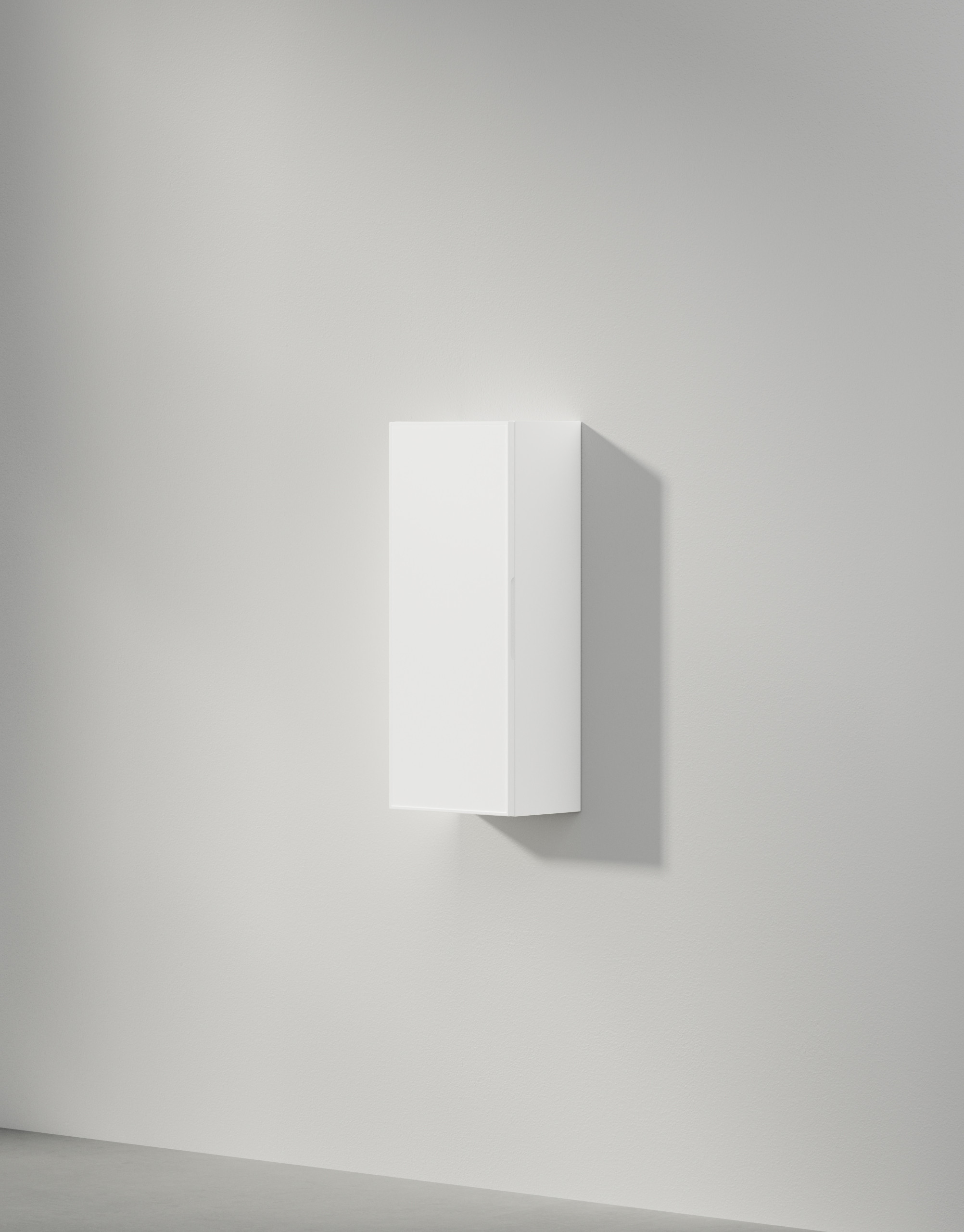 Väggskåp som matchar kommoderna i möbelserie Viskan Shade. Skåpet kommer med infräst grepp i dörren som du vid beställning väljer om du vill ha monterad till höger eller vänster. Komplettera med grepp eller handtag om du vill. Skåpet har två hyllplan i 6 mm härdat säkerhetsglas, samtliga flyttbara. Två väggskåp kan placeras intill varandra om du beställer ett med öppning åt vänster, det andra åt höger.