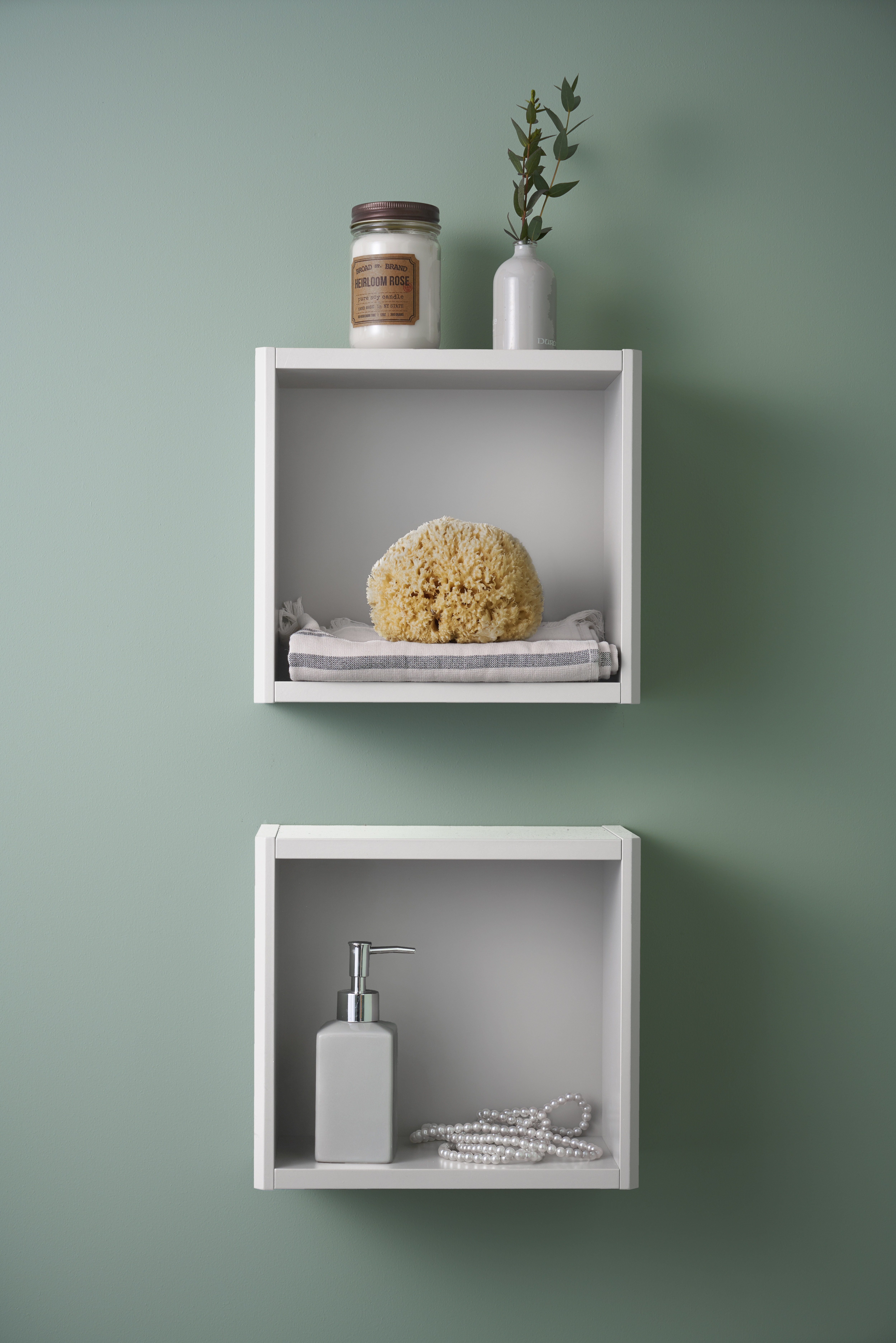 Graphic öppen förvaringskub 30cm Vit. Upphängningssystem som lätt och snabbt monteras på vägg och enkelt justeras till rätt position.