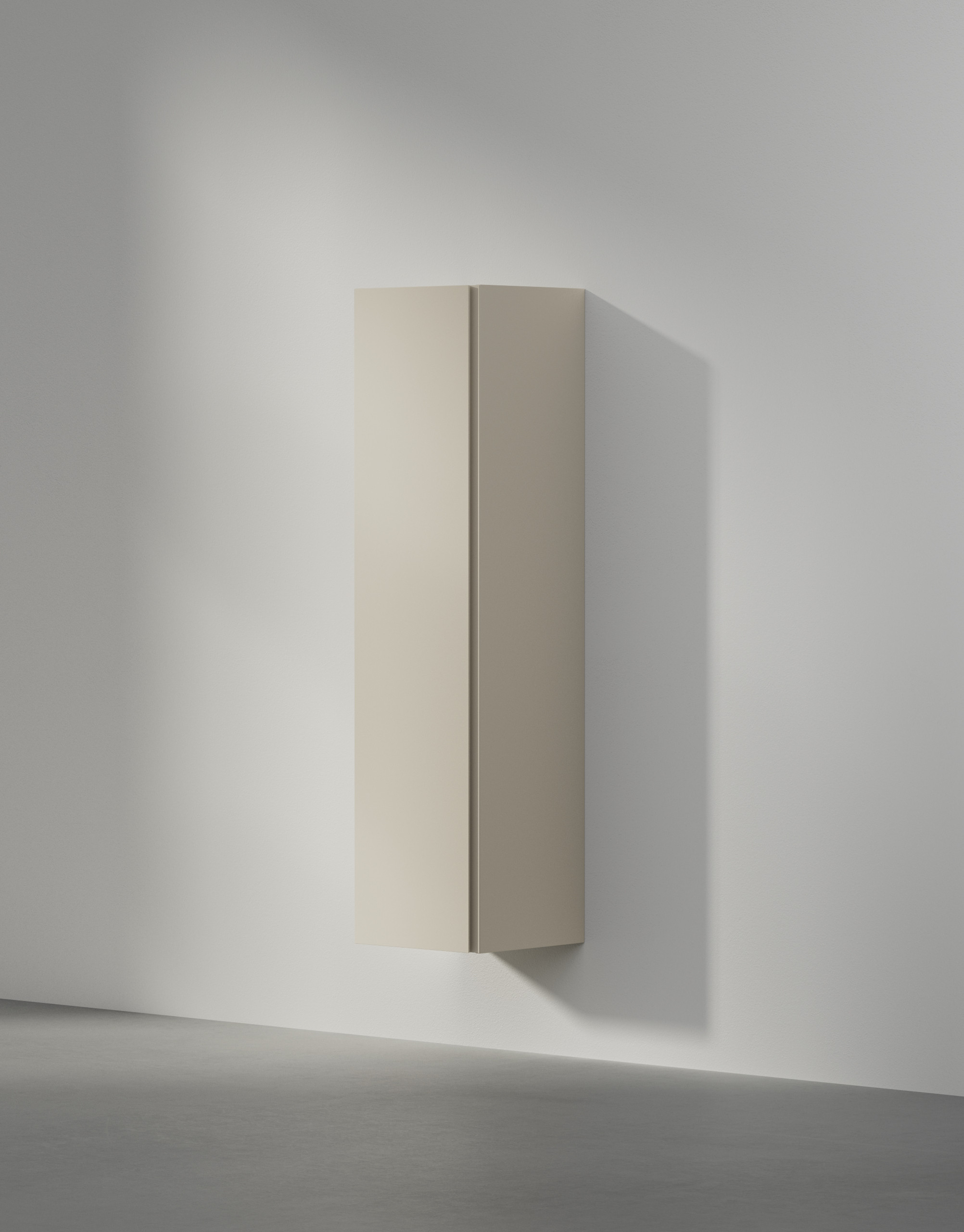Ett rymligt högskåp som matchar kommoderna i möbelserie Viskan Grip med grepplist i aluminium i samma kulör som skåpet. Välj om du vill ha dörren monterad till höger eller vänster. Skåpet har ett fast hyllplan i trä, övriga i 6 mm härdat säkerhetsglas, samtliga flyttbara. Extrautrusta gärna högskåpet med eluttag, valfri placering. Två högskåp kan placeras intill varandra om du beställer ett med öppning åt vänster, det andra åt höger.
