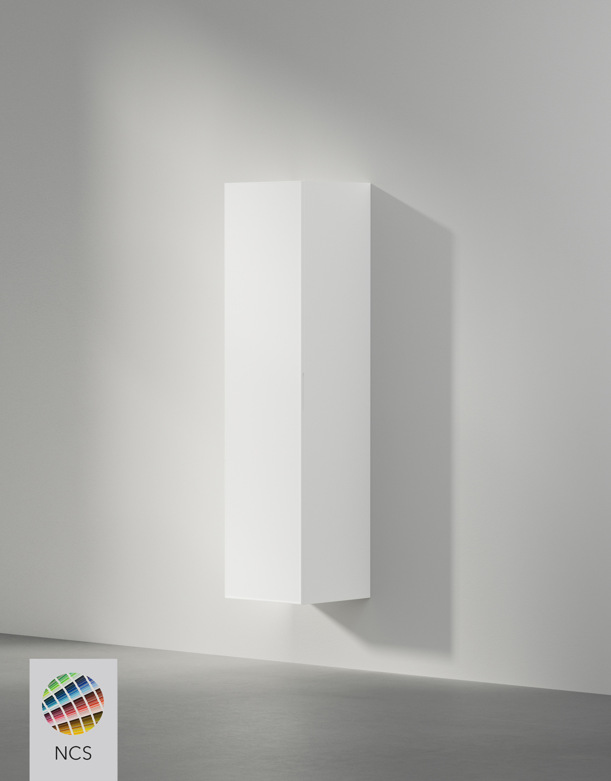 Ett rymligt högskåp som matchar kommoderna i möbelserie Viskan Shade. Skåpet kommer med infräst grepp i dörren som du vid beställning väljer om du vill ha monterad till höger eller vänster. Komplettera med grepp eller handtag om du vill. Skåpet har ett fast hyllplan i trä, övriga i 6 mm härdat säkerhetsglas, samtliga flyttbara. Extrautrusta gärna högskåpet med eluttag, valfri placering. Två högskåp kan placeras intill varandra om du beställer ett med öppning åt vänster, det andra åt höger.