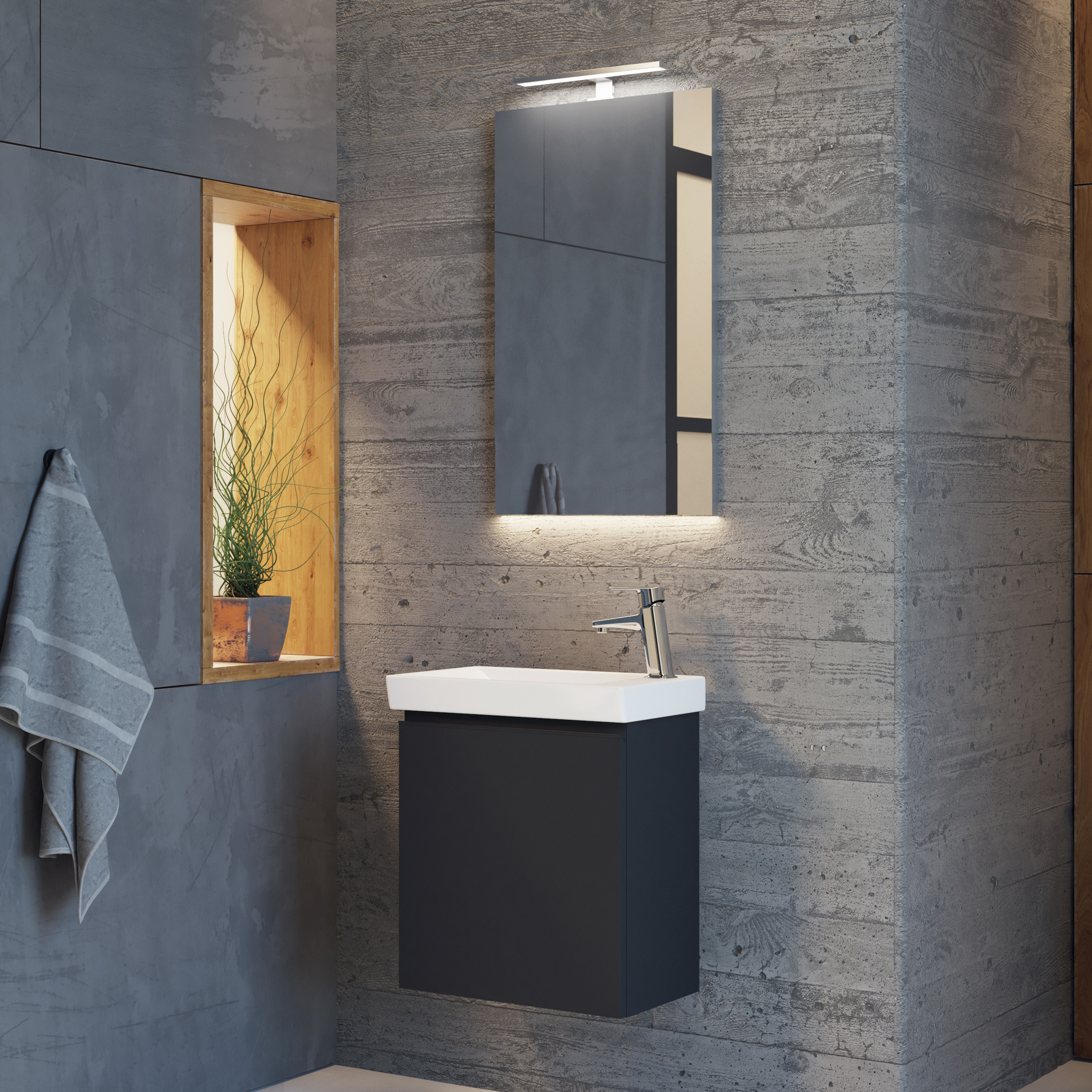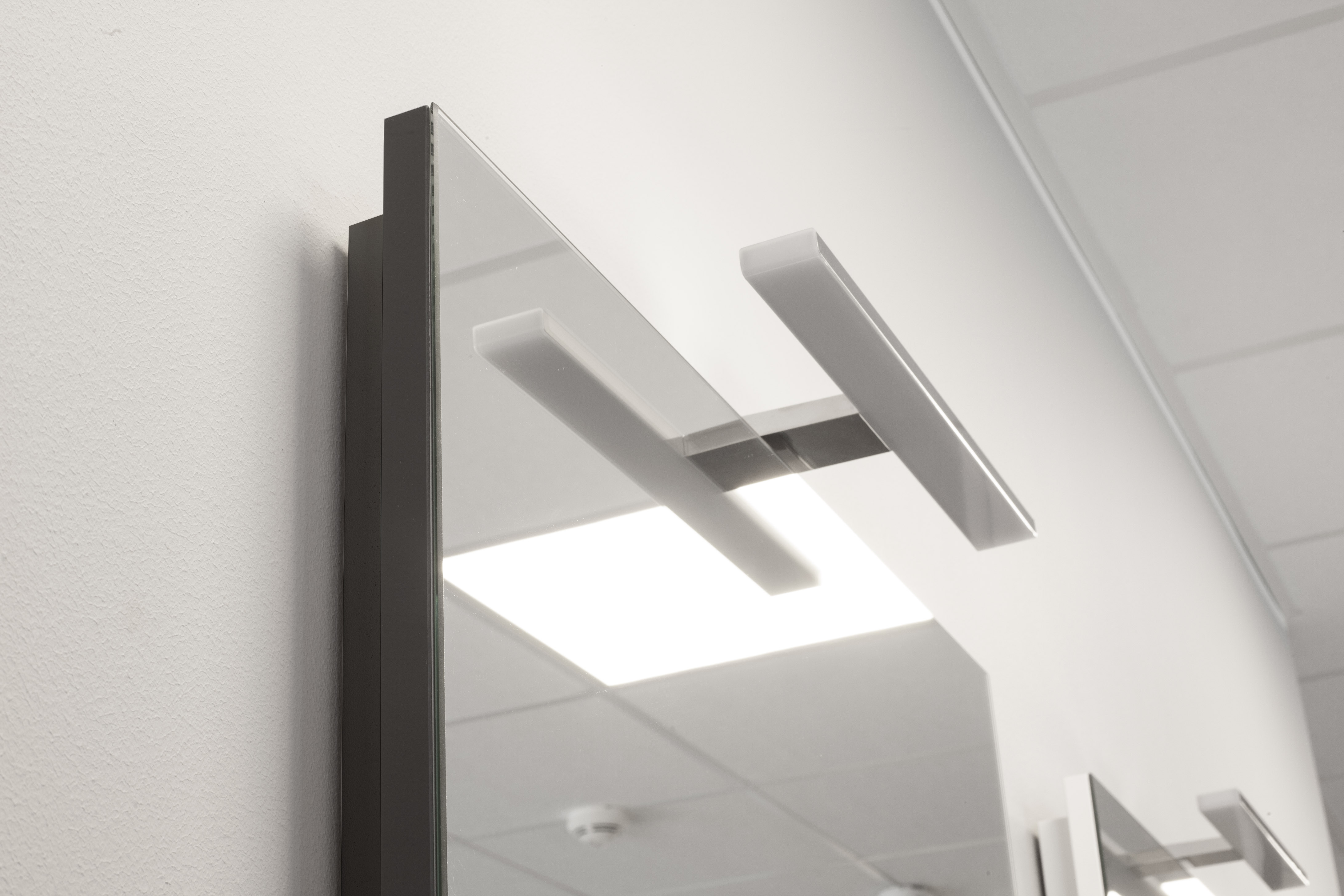Victoria spegel med topp (300mm) och under belysning, 450mm bred, svarta kanter, underbelysning med ledband , avsedd för väggmontering fyrkantig,