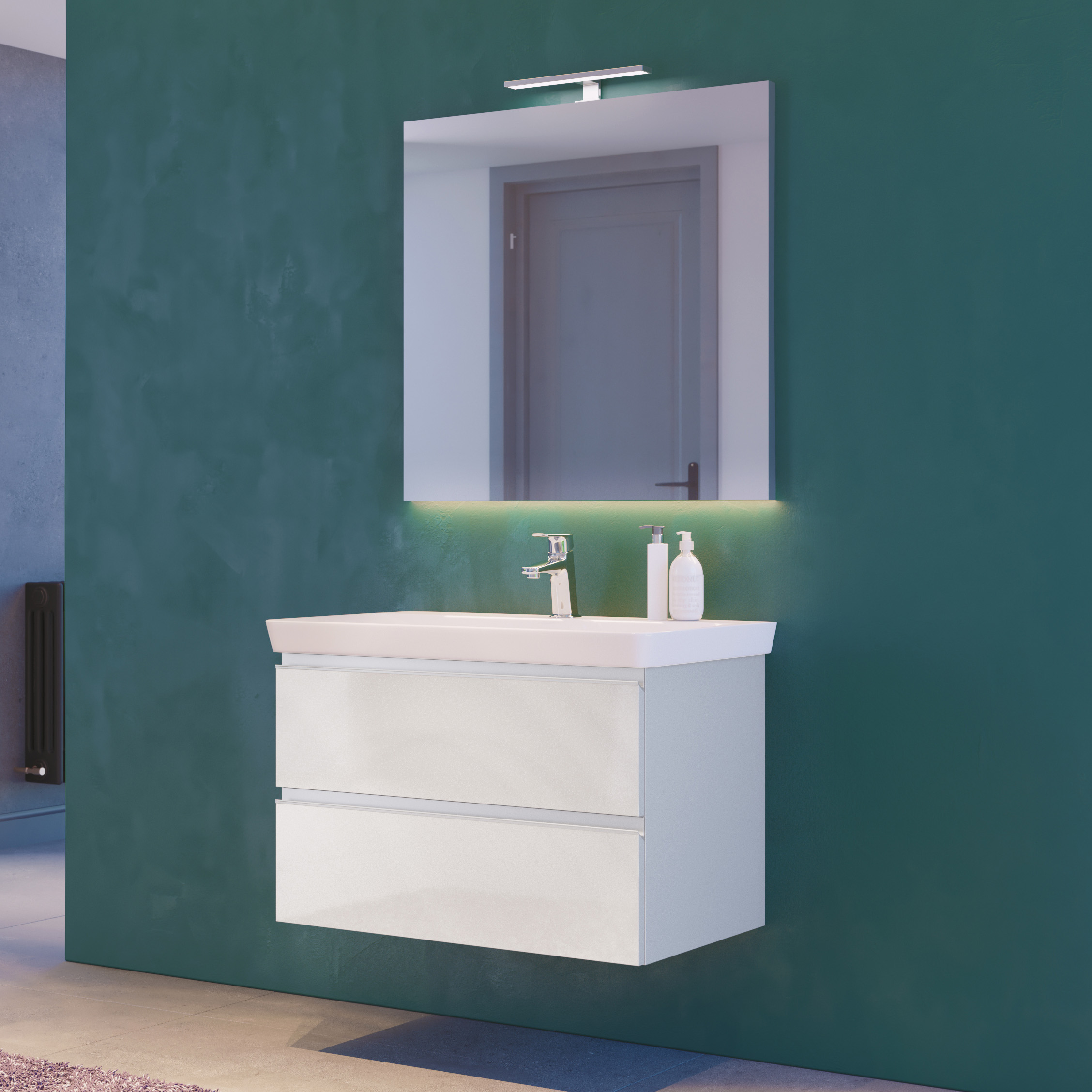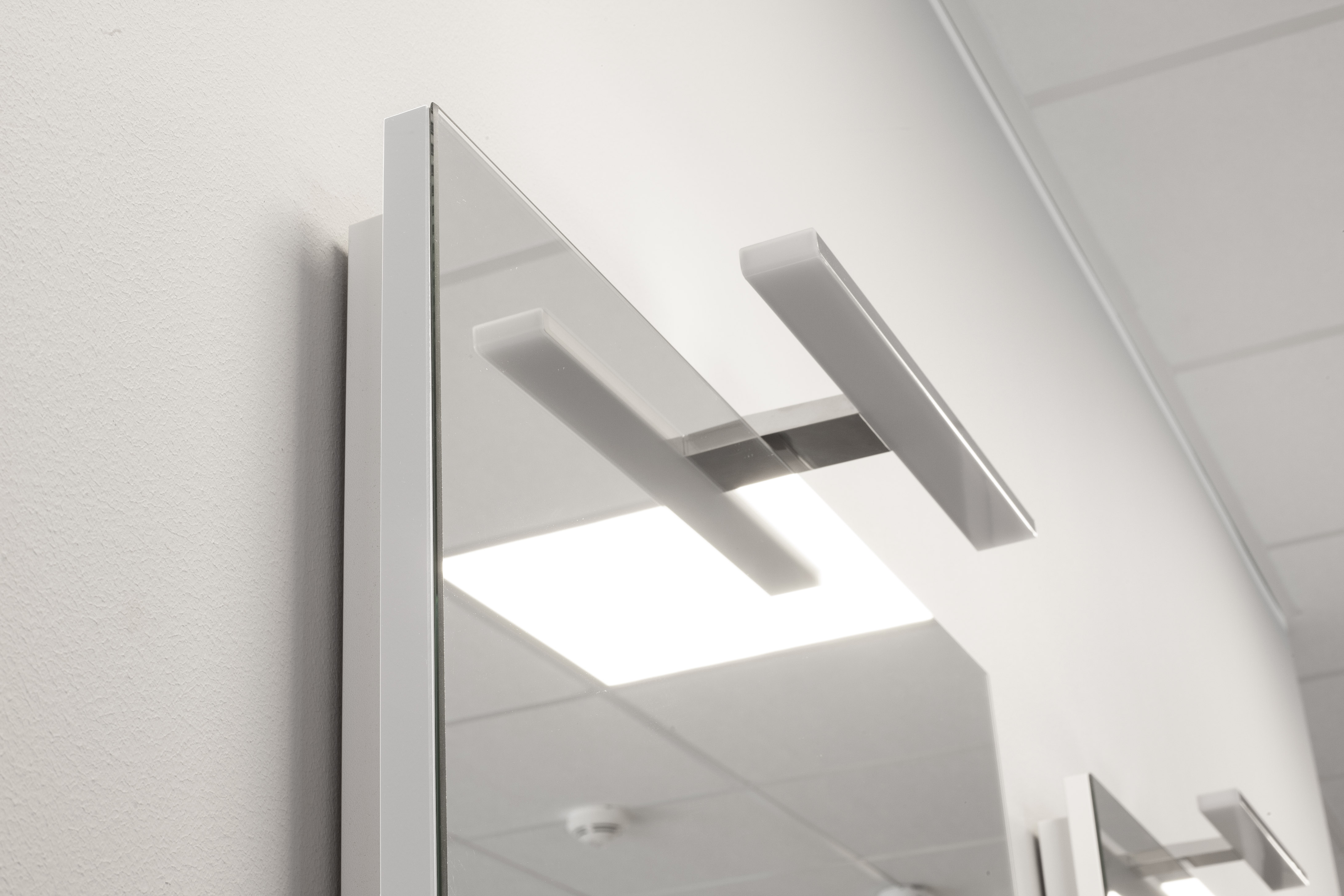 Spegel med under och topp (300mm) belysning led, bredd 800mm, underbelysning med led band, vita kanter, avsedd för väggmontering fyrkantig