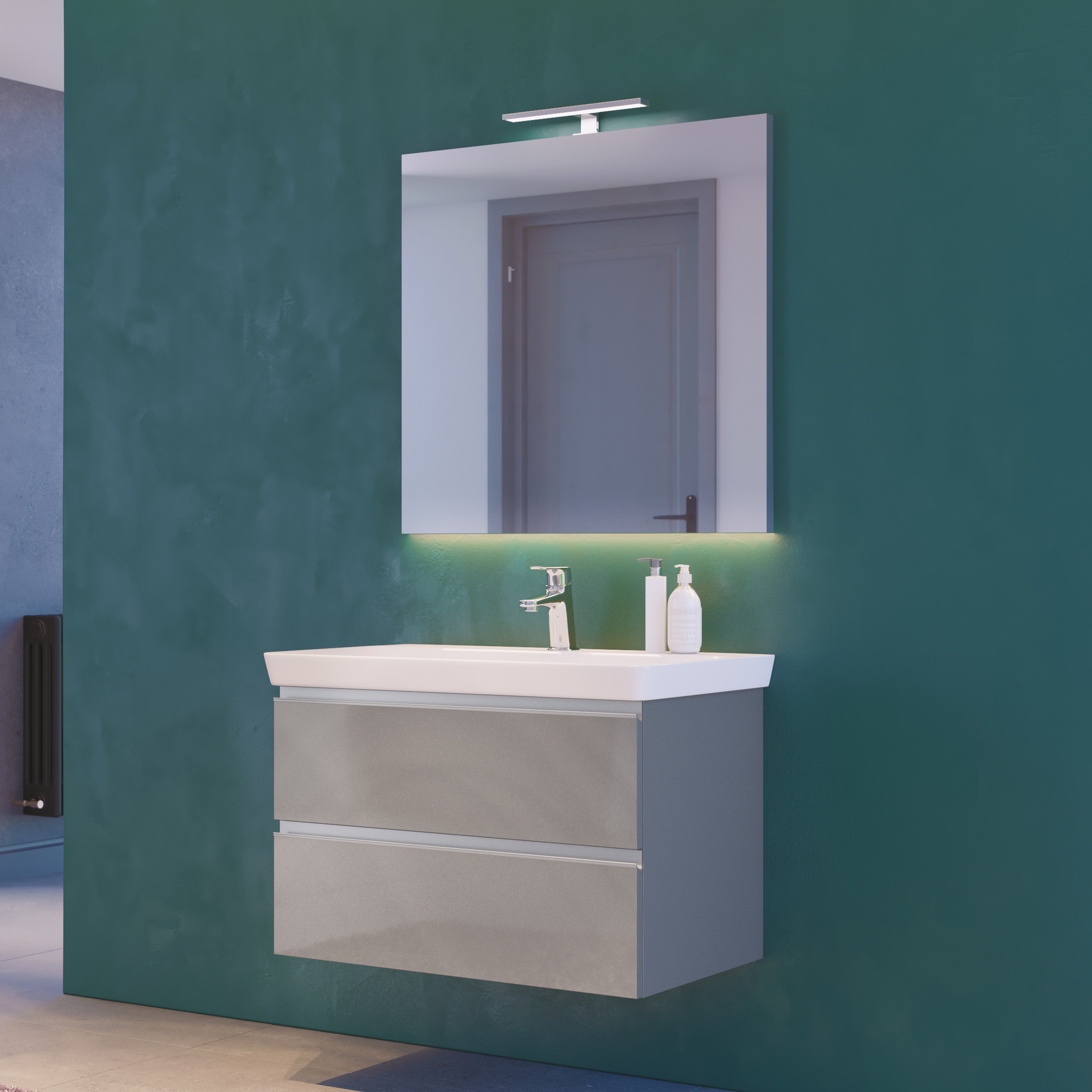 Spegel med under och topp (300mm) belysning led , bredd 800mm, underbelysning med led band , gråa kanter, avsedd för väggmontering, fyrkantig