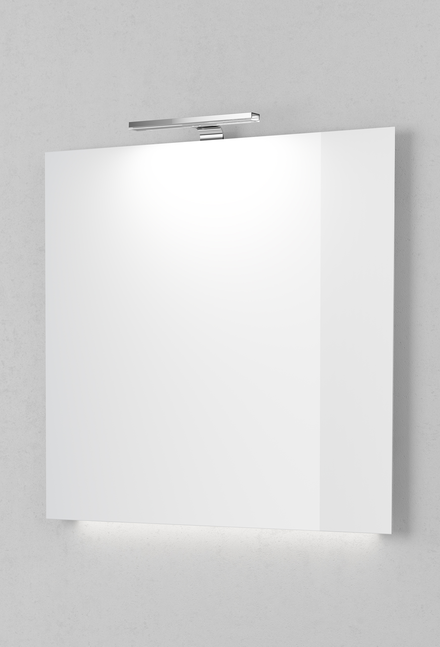 Spegel FEEL i 80 cm bredd är en klassisk badrumsspegel med 1 st belysningsarmatur och underbelysning i LED. Spegeln har ingen av/på-knapp utan kopplas till rummets strömbrytare.