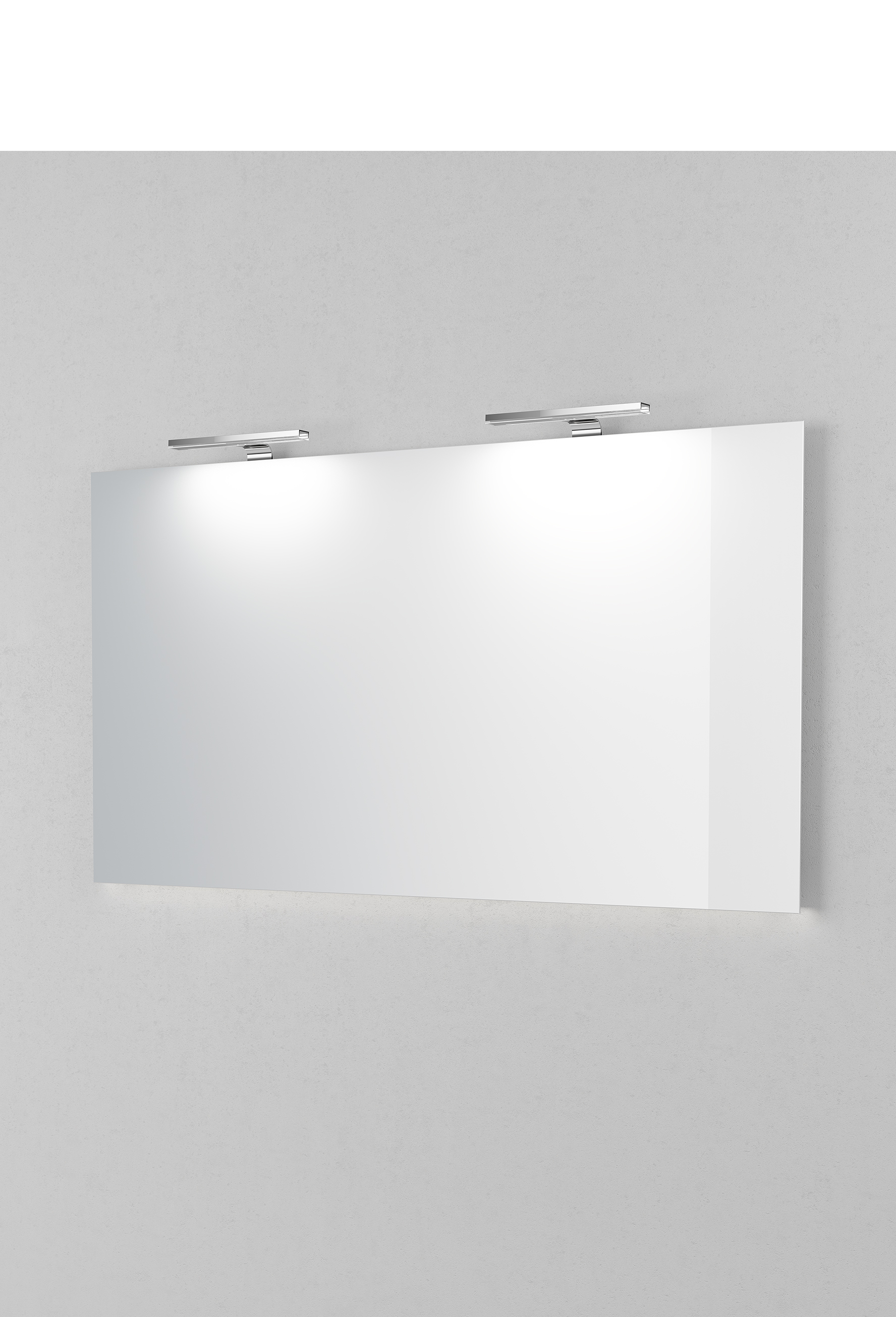 Spegel FEEL i 140 cm bredd är en klassisk badrumsspegel med 2 st belysningsarmaturer och underbelysning i LED. Spegeln har ingen av/på-knapp utan kopplas till rummets strömbrytare.