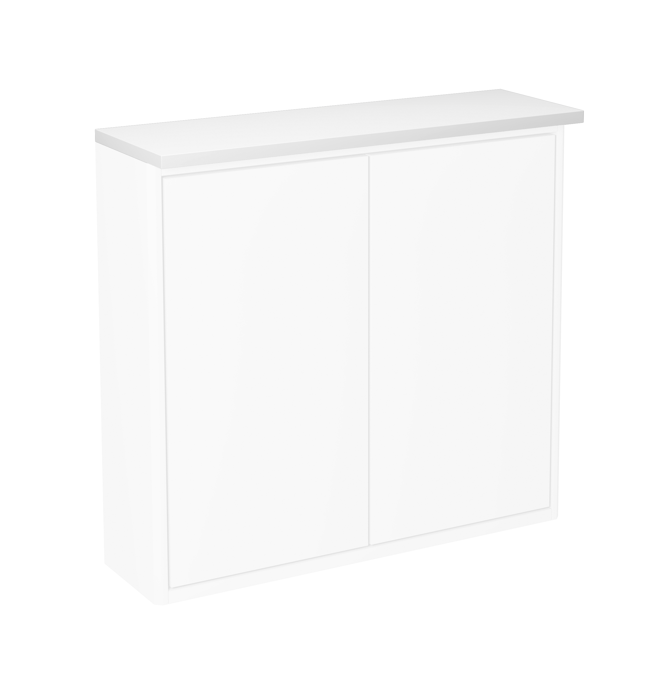 Gustavsberg Graphic Toppskiva vit, med integrerad belysning till skåpet som är 60x16 cm. Belysningen lyser upp inne i skåpet när dörrarna är öppna och ger en dekorativ belysning när de är stängda. Finns två olika längder, 60 och 120 cm, för montage på ett eller två väggskåp i bredd.