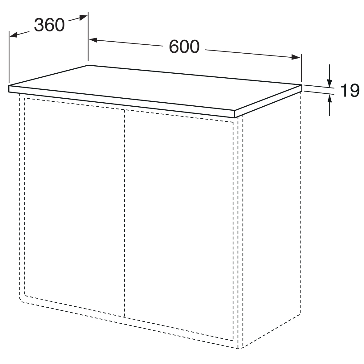 Gustavsberg Graphic Toppskiva vit, med integrerad belysning till skåpet som är 60x36 cm. Belysningen lyser upp inne i skåpet när dörrarna är öppna och ger en dekorativ belysning när de är stängda. Finns två olika längder, 60 och 120 cm, för montage på ett eller två väggskåp i bredd.