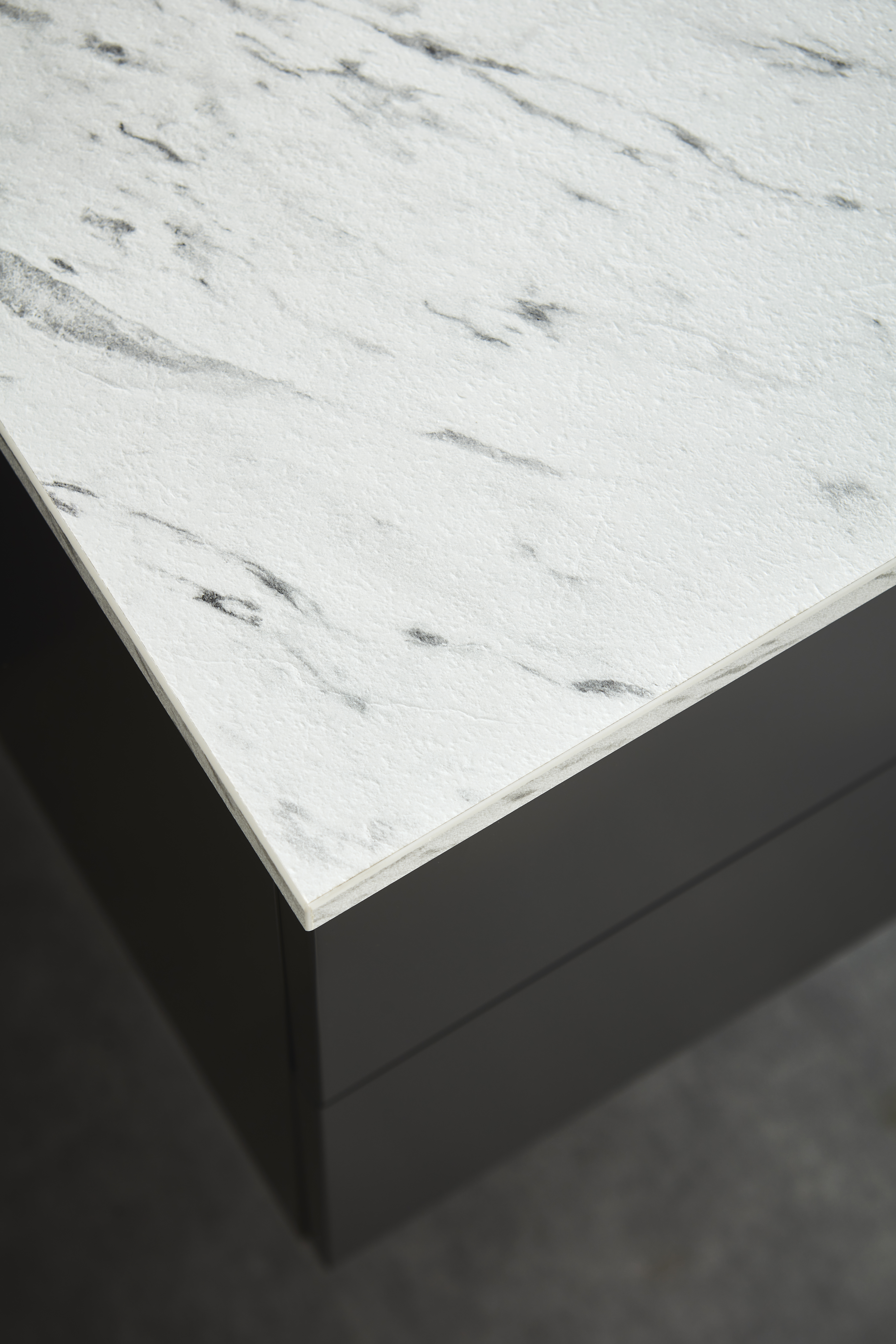 OnTop fukttröga bänkskivor av laminat. Marmormönstrad. Håltagning utförs av installatören beroende på blandare, handfatsmodell och och val av placering.