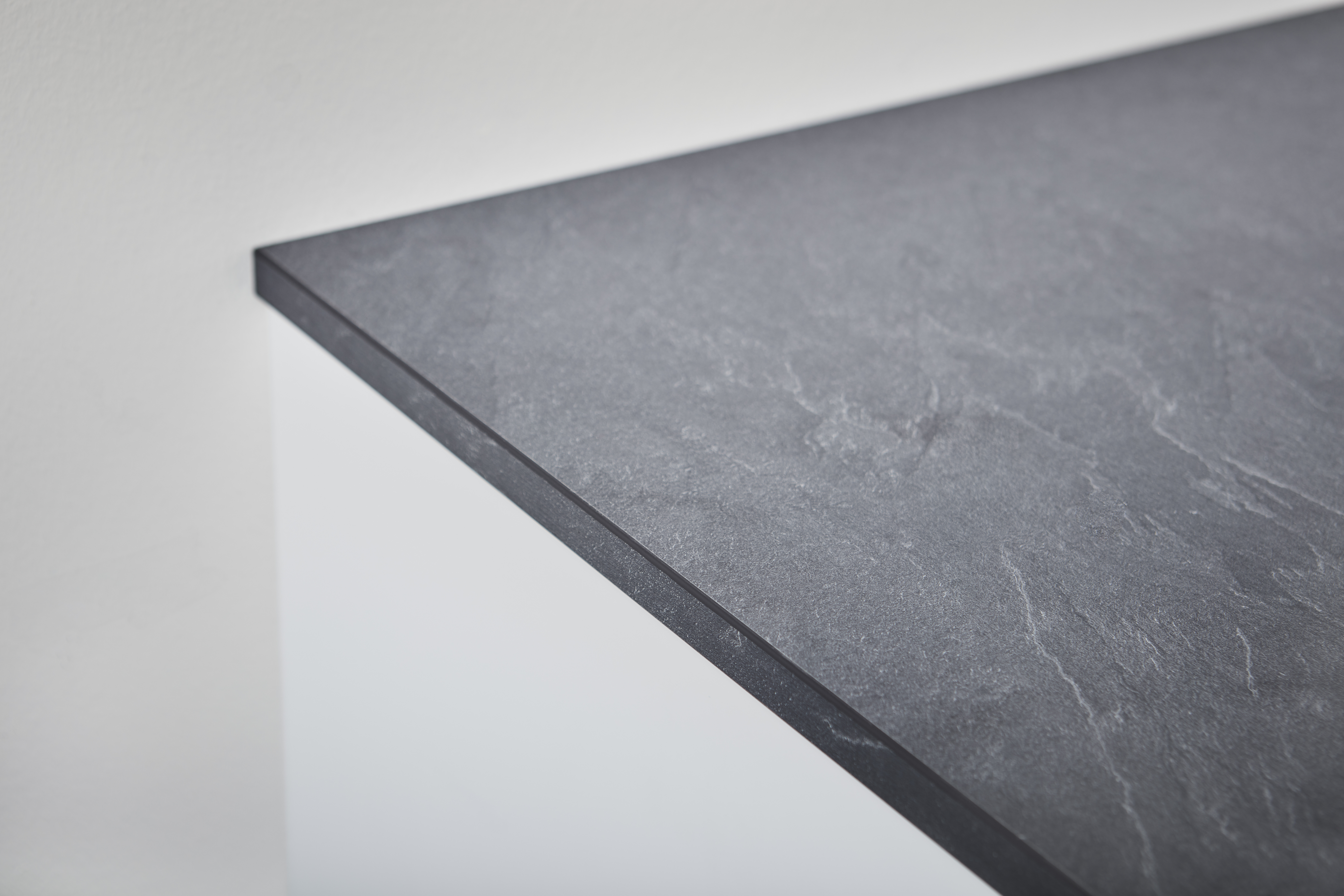 Skiffermönstrad bänksiva av melaminbelagd MDF. Håltagning utförs av installatör beroende på blandare och fristående handfat samt val av placering.