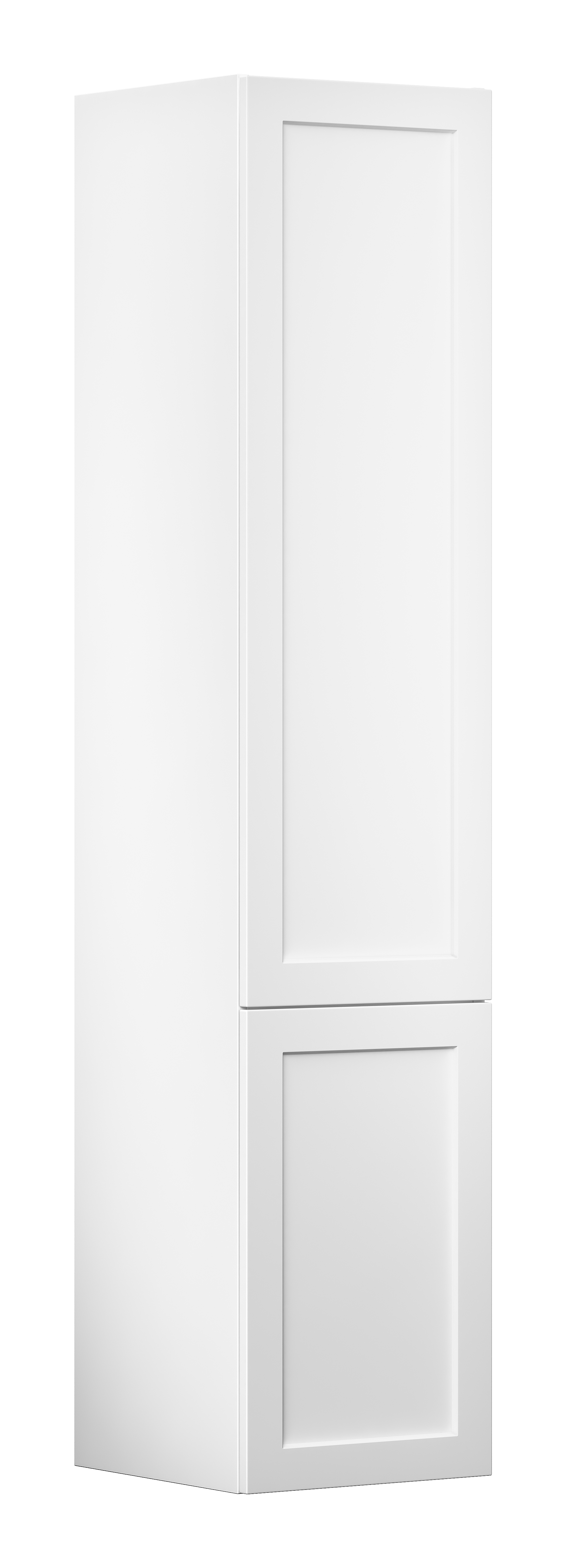 Gustavsberg Artic Högskåp, vit ramlucka med två dörrar, 35 cm. Mjukstängande dörrar som är vändbara för höger- eller vänstermontage. 1 fast hyllplan och tre flyttbara hyllplan i glas.