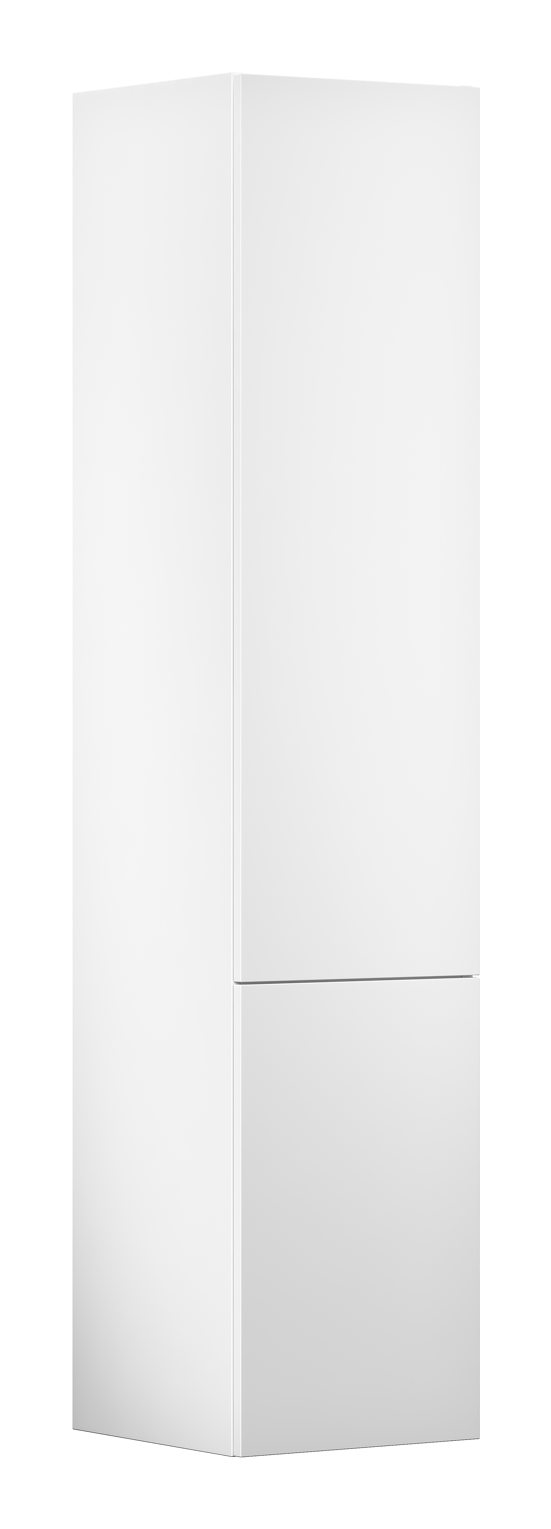 Gustavsberg Artic Högskåp, vit slät lucka med två dörrar, 35 cm. Mjukstängande dörrar som är vändbara för höger- eller vänstermontage. 1 fast hyllplan och tre flyttbara hyllplan i glas.
