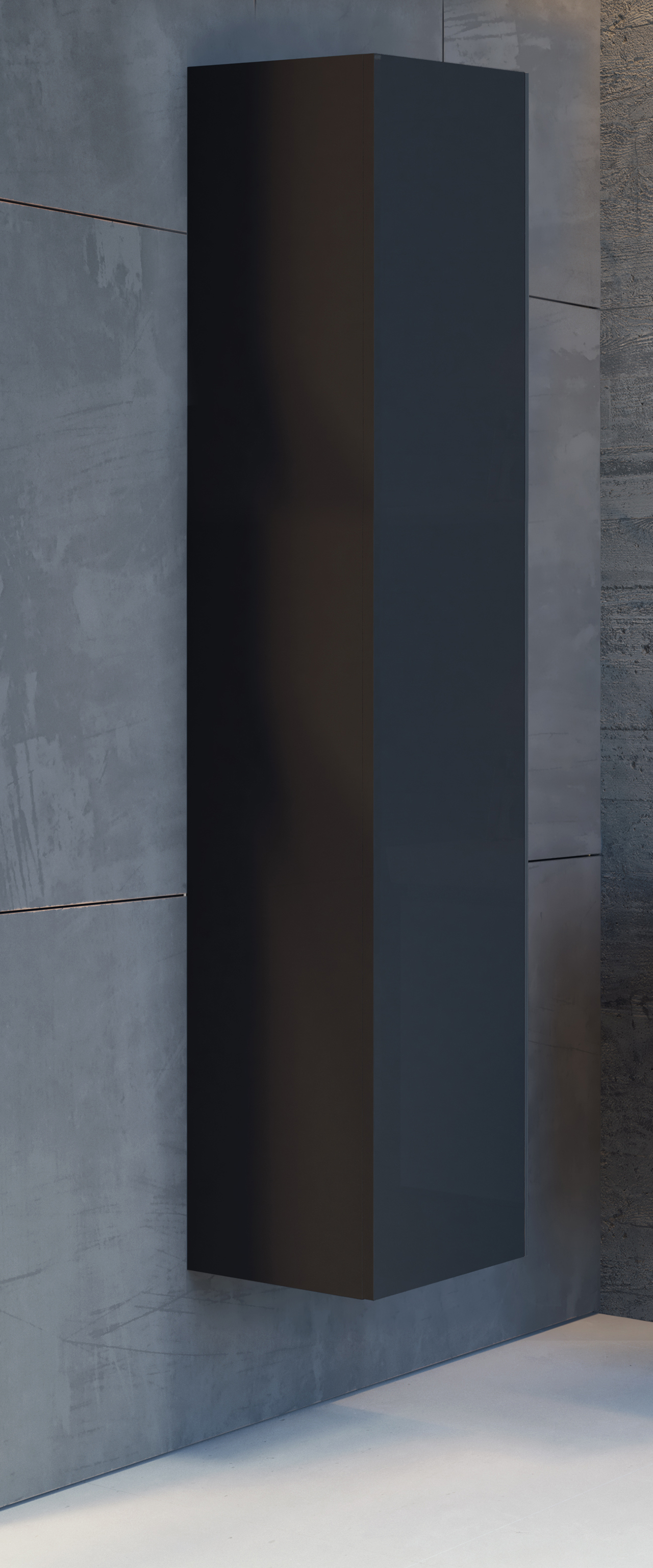 Arrow sidoskåp hög 1718x350x350, fukttrög spånskiva , mattsvart dörr i MDF/TFL och i 3D-termolaminat som är mycket slitstarkt och fuktbeständigt, lackerade aluminiumhandtag.