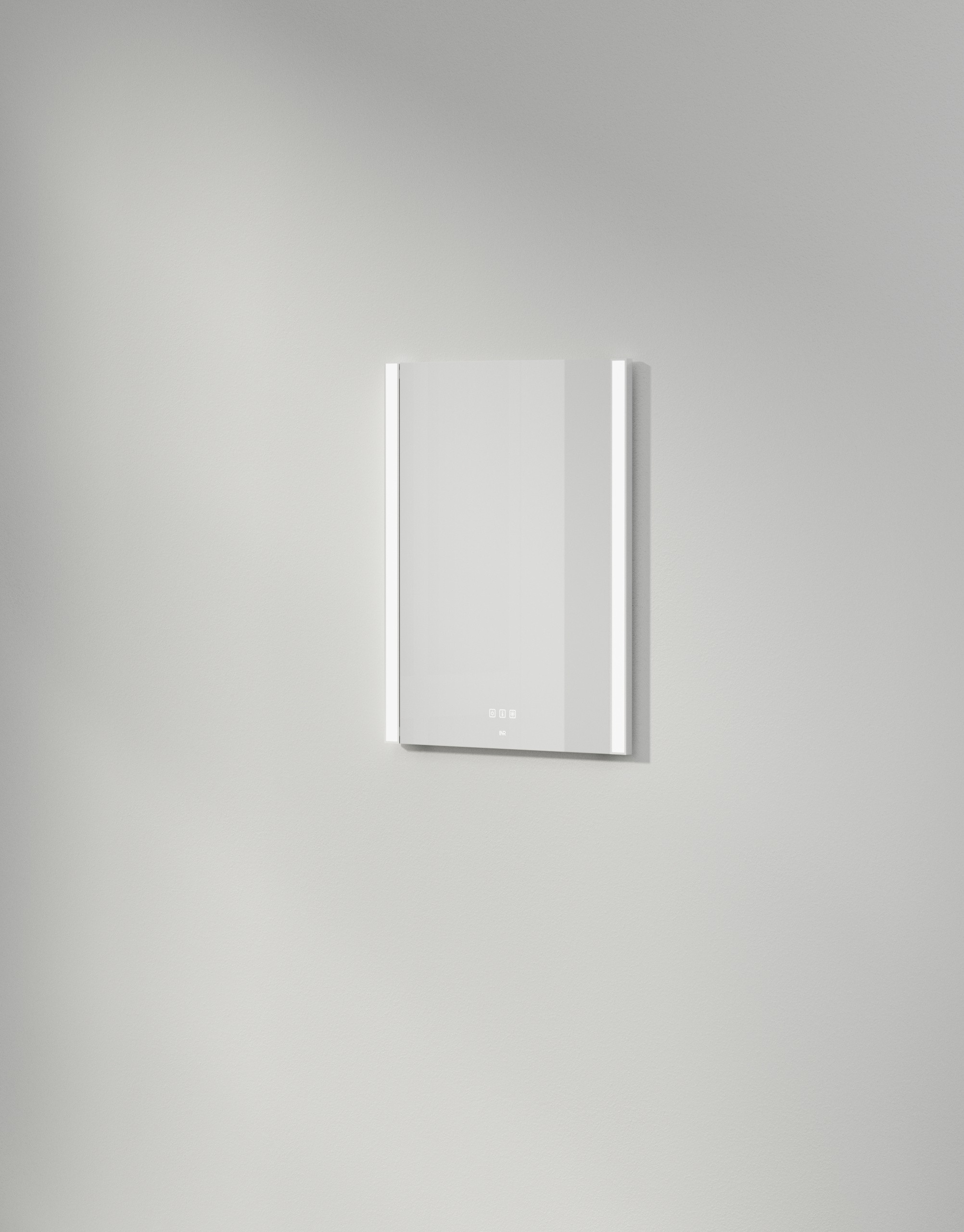Touch är en rektangulär spegel där du steglöst reglerar ljusstyrka och färgtemperatur med hjälp av touch-knapparna nedtill. Ställ in just den typ av belysning som du önskar för stunden. Släck ner och återkom till samma inställning nästa gång du tänder belysningen.