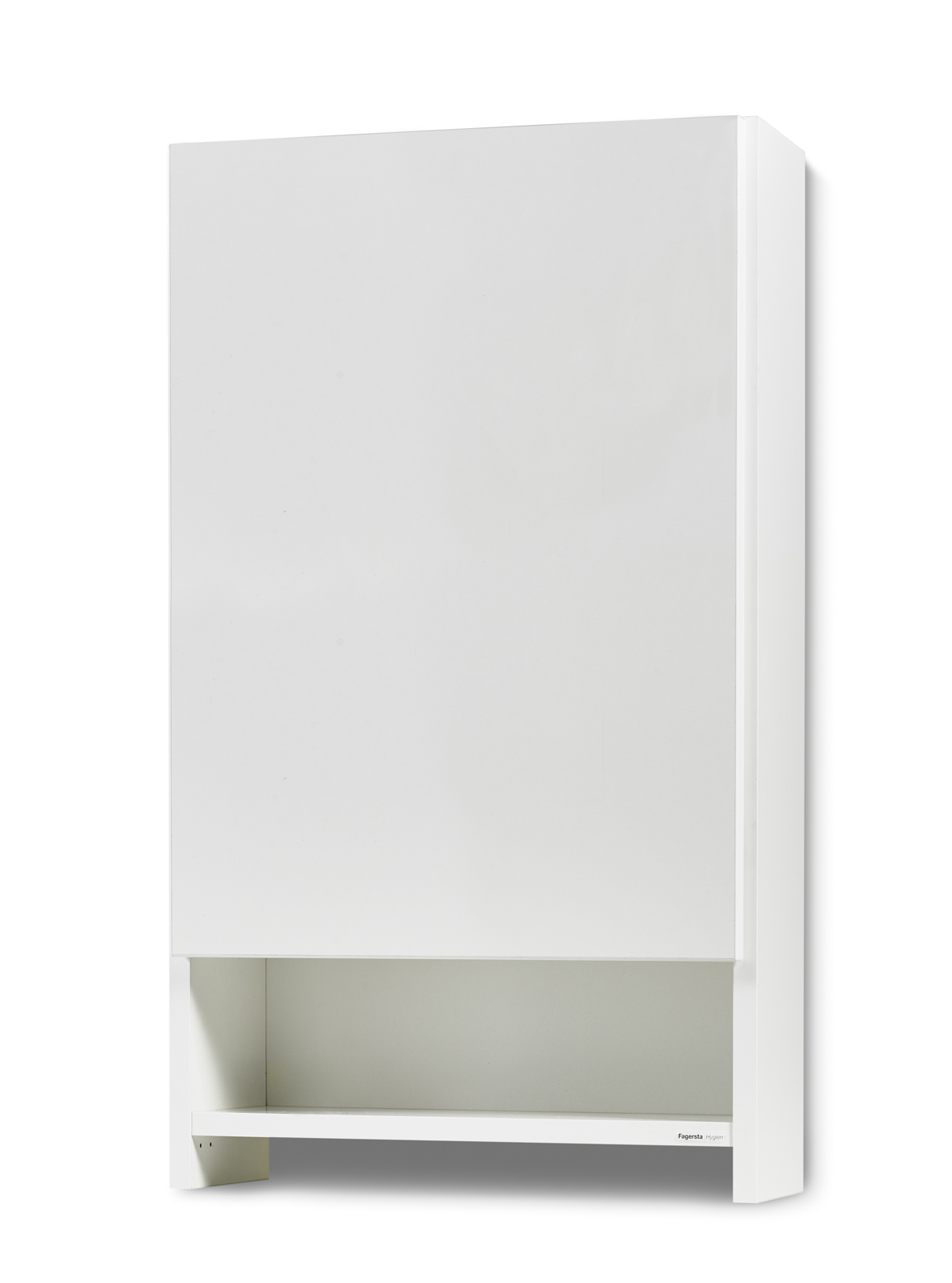 Badrumsskåp Filip 1 - Ett badrumsskåp i trä med väl tilltagen höjd. Levereras färdigmonterat, komplett med trädörr i folierad spånskiva med förstärkt kantlist.