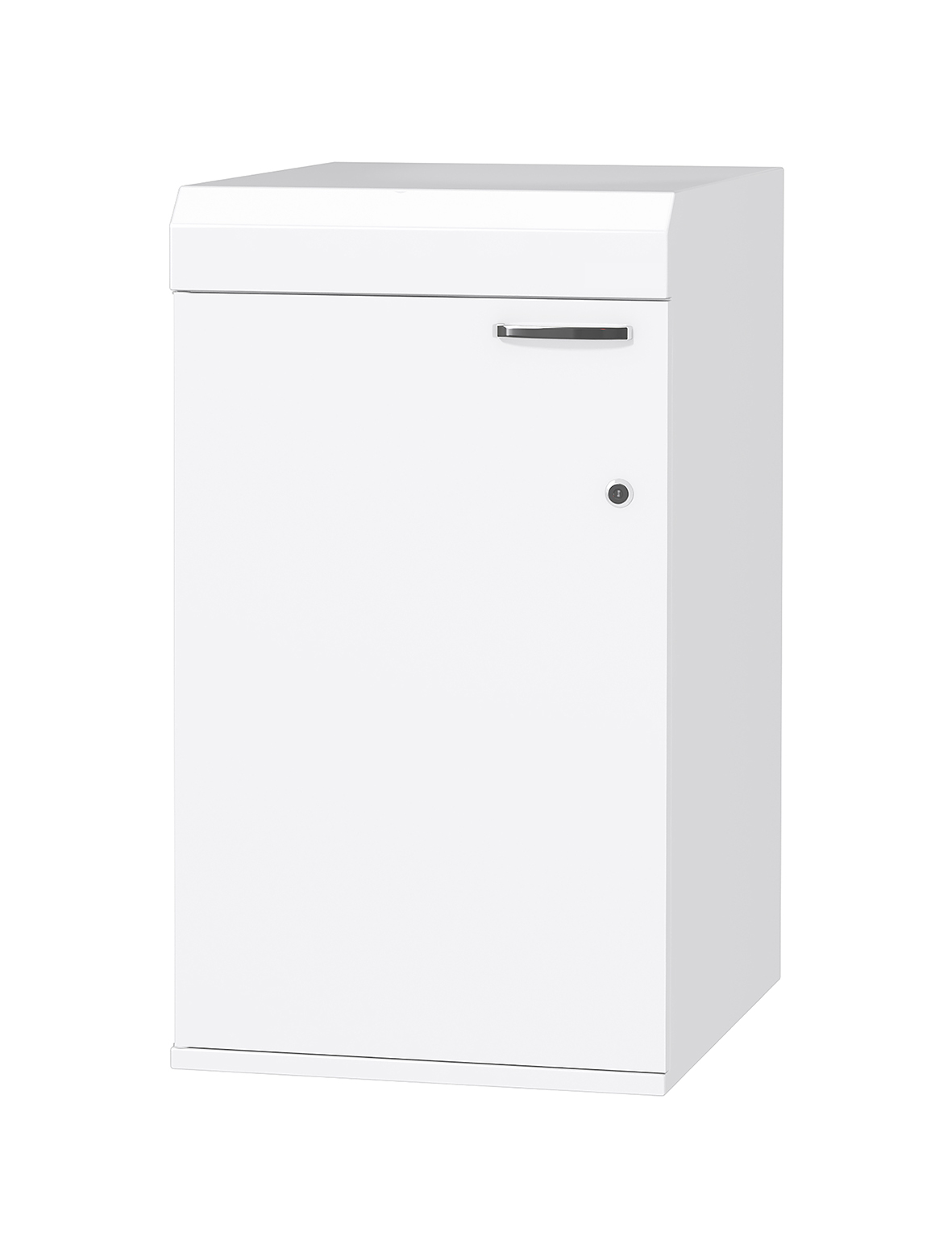 Skåpet är tillverkat i pulvermålat stål med nanokeramisk ytbehandling. En fast hylla och en tvättskorg. Cylinderlås och magnet. Bottnen på skåpet har färdiga hål för möbelben. Vänsterhänt.