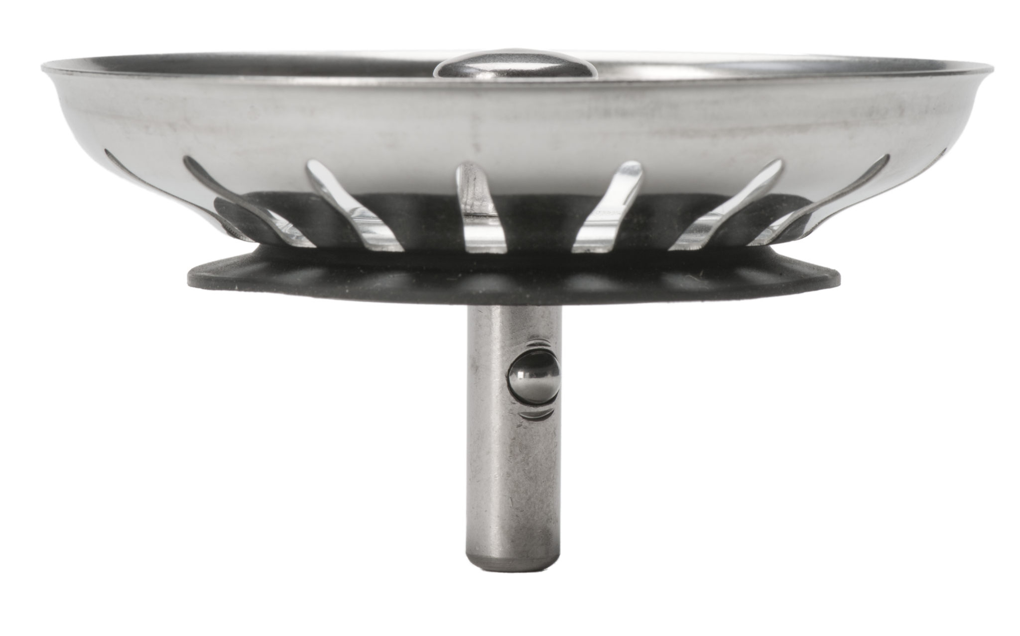 Silkorg Comploc manuell. Centrumpinne i rostfritt med kula ej centrerad. Kula närmare övre del av silkorg. Ø 80 mm Ø packning 54 mm Längd centrumpinne: 27 mm Antal silhål: 18