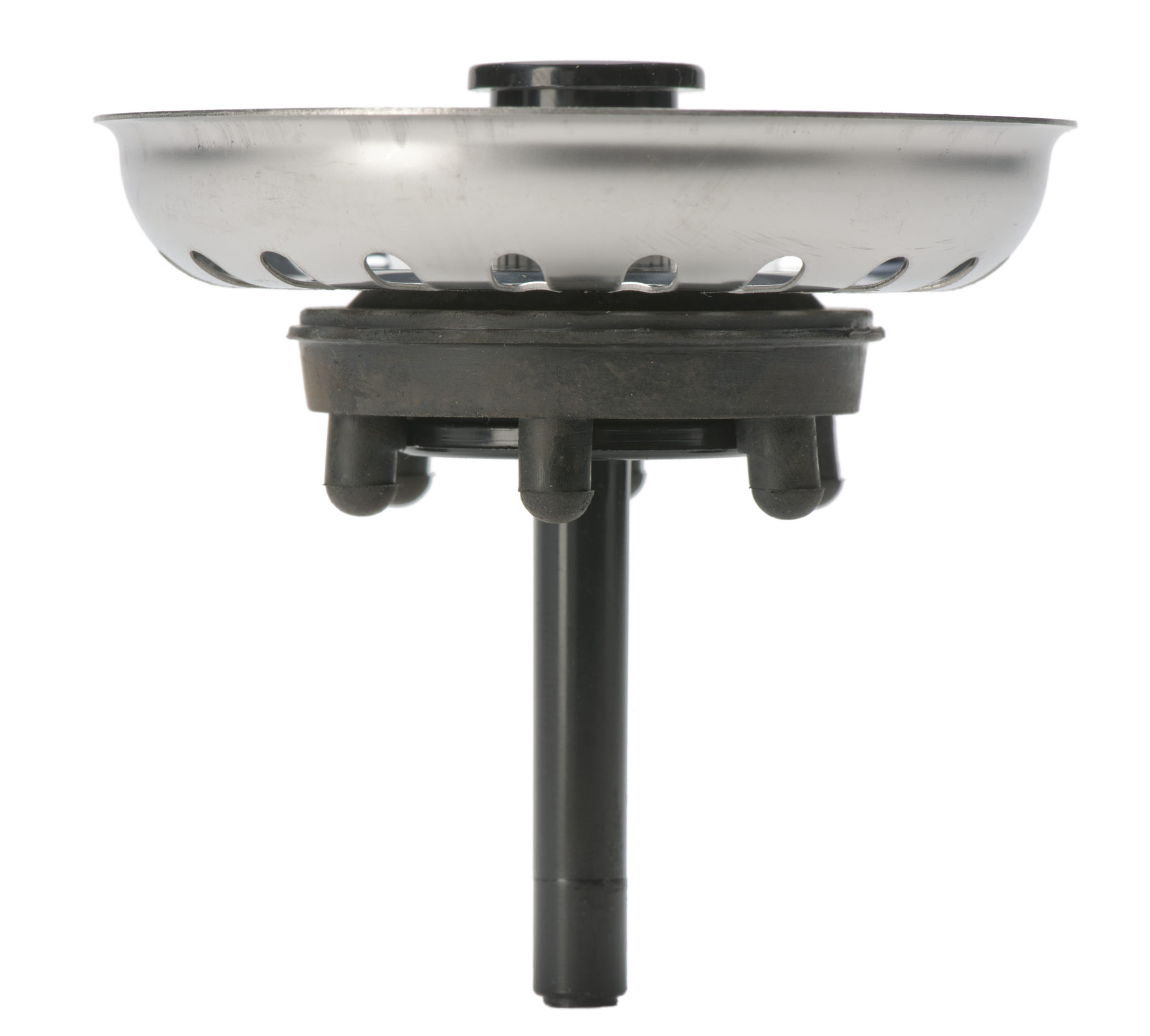Silkorg i rostfritt med svart lyftknopp och centrumpinne i svart plast.6 alt. 8 nabbar i gummi på undersidan.