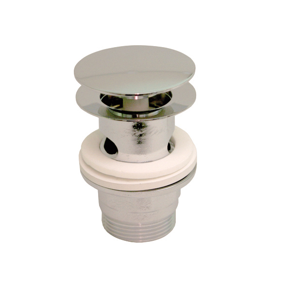 Bottenventil Pop-up är en bottenventil för tvättställ i förkromad mässing med R32 anslutning. Locket på bottenventilen öppnas och stängs med ett tryck. Bottenventilen har anslutning för bräddavlopp.