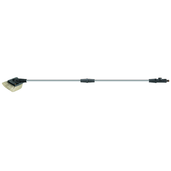 Kraftig tvättborste med slitstarka syntetborst. 120cm långt handtag och ställbart flöde.